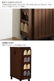 下駄箱本体(GBT-1060D、GBT-1075D、GBT-1860D)に取り付けて使えます。専用のスリッパ収納でスッキリした玄関に。