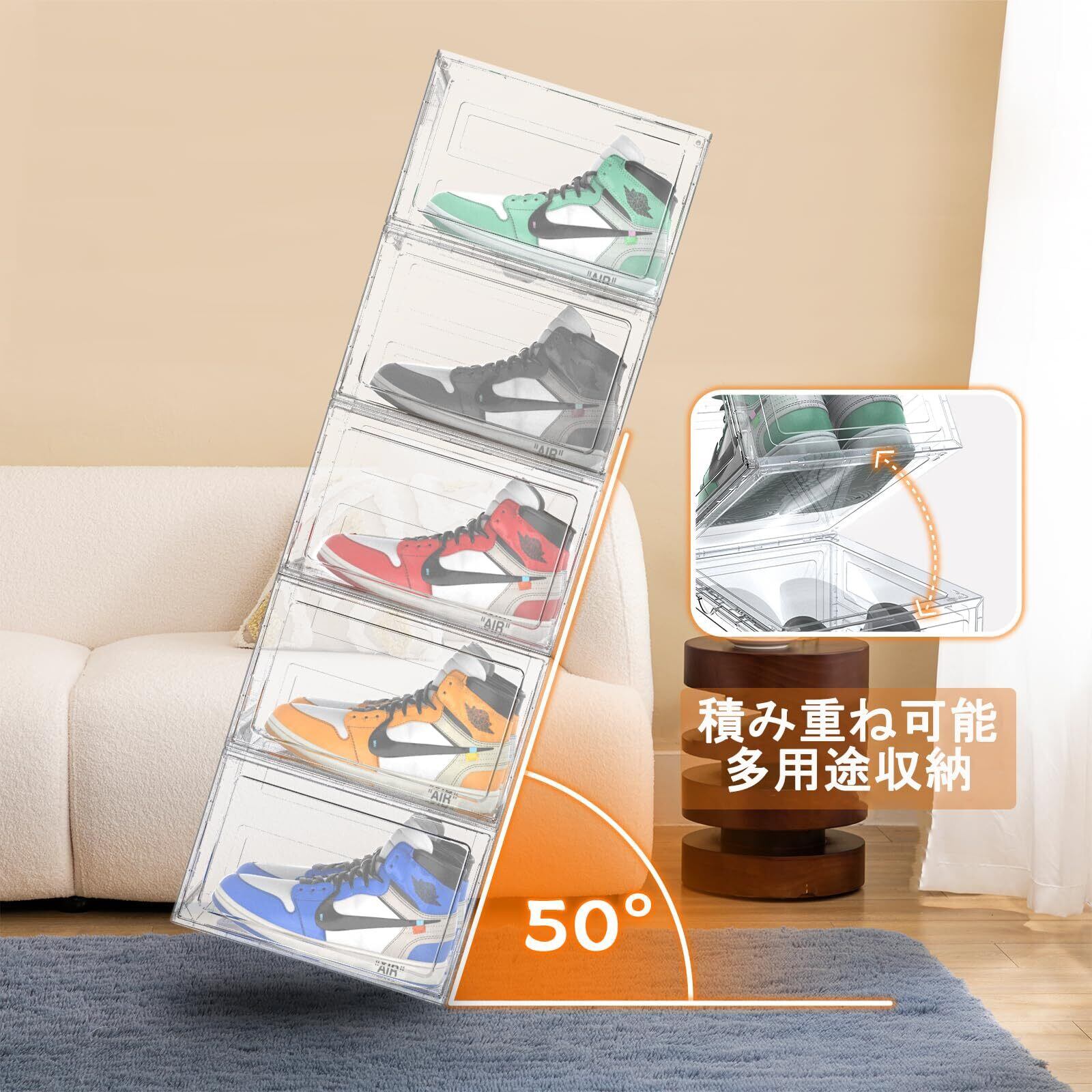 【2025新シューズボックス 磁石開閉扉 UVカット 高さ21cm】6個シューズケース 大容量収納ボックス 組み立て式 積み重ね可能 透明収納靴箱 小物化粧品収納ケース靴ケース 玄関靴棚 扉付きシューズラッ 6個セット トランスペアレント