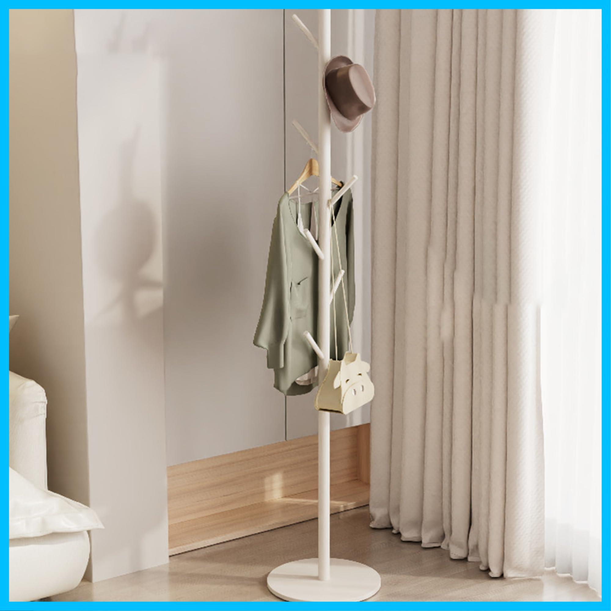 ポールハンガー コート掛け スタンド ハンガーポール 廊下のハンガー 金属製 倒れにくい カビが生えない 170cmの大きなベース 防湿 取り付け簡単 取り外し可能 高さ調節可能 コートハンガー スリム ファッション 北欧スタイル (白)