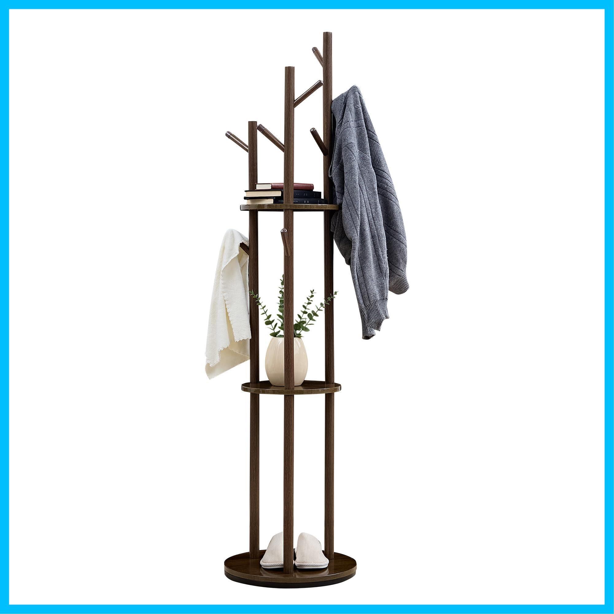 VECELO ポールハンガー コートハンガー コートラック 回転式ベース ハンガーラック 幅40×奥行き40×高さ163cm コート掛け 洋服掛け スリム 衣類収納 省スペース 多機能 おしゃれ コート 帽子 マフラー ブラウン | Lulu