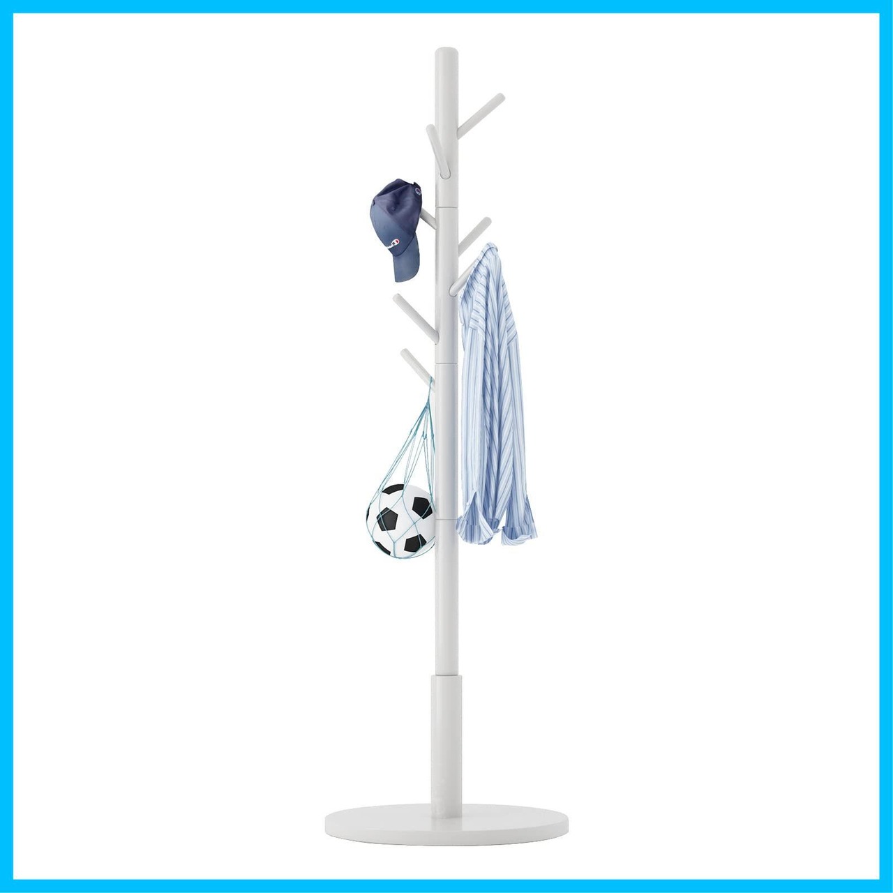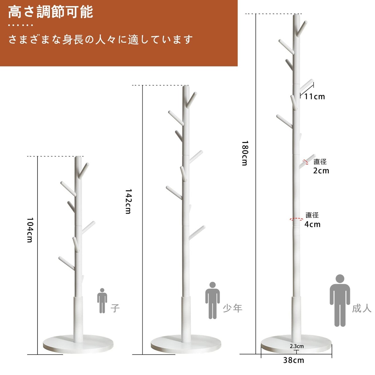 Aibiju コートハンガー 木製 ポールハンガー 4段 幅38×奥行38×高さ180cm ハンガーラック スリム おしゃれ 衣類収納 8 フック 倒れにくい土台 組立て簡単 衣架 洋服ラック 帽子掛け 白い YD-1009 | Lulu