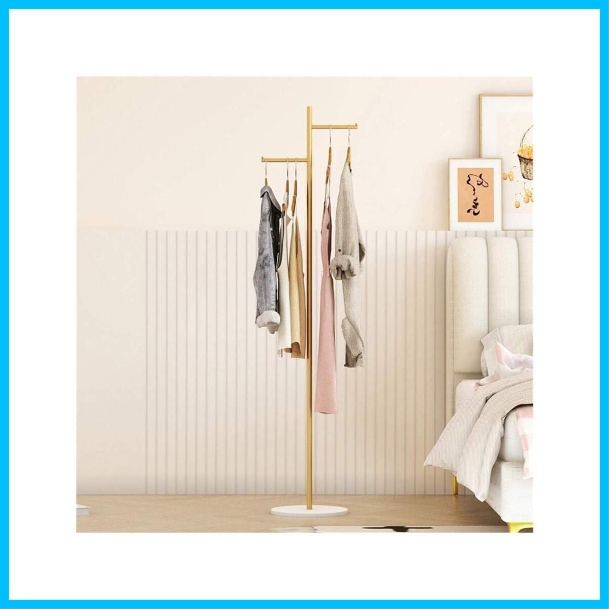 モダンベッドルームハンガーラックフロアスタンド 玄関 ラック ホワイト コートスタンド 脚立式 服掛け アイアン製 シンプルなスタイル 衣類掛け組み立てること容易 (ゴールド)