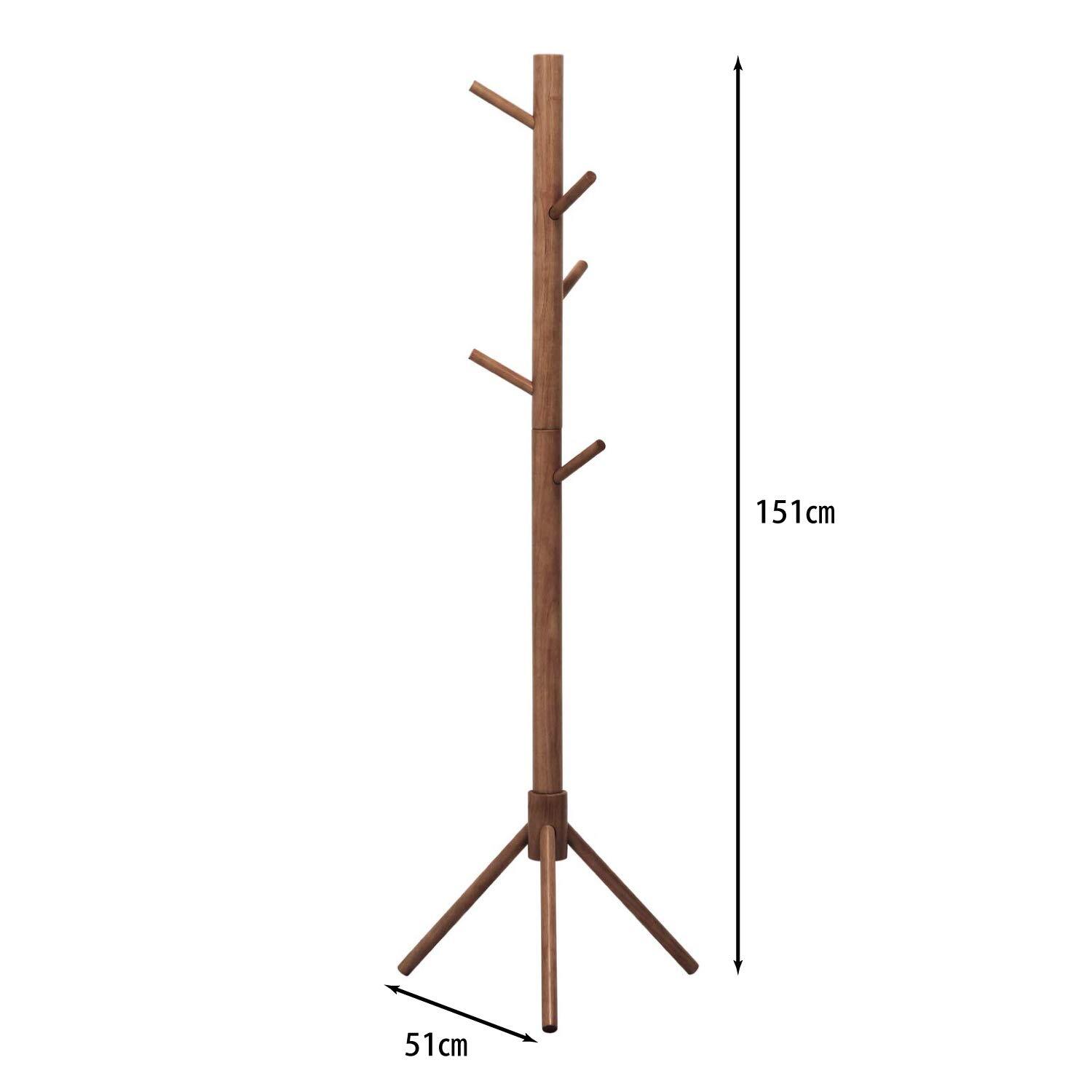 不二貿易 コートハンガー ハンガーラック 木製 幅51×奥行44×高さ151cm ブラウン 小枝フック 玄関 10786