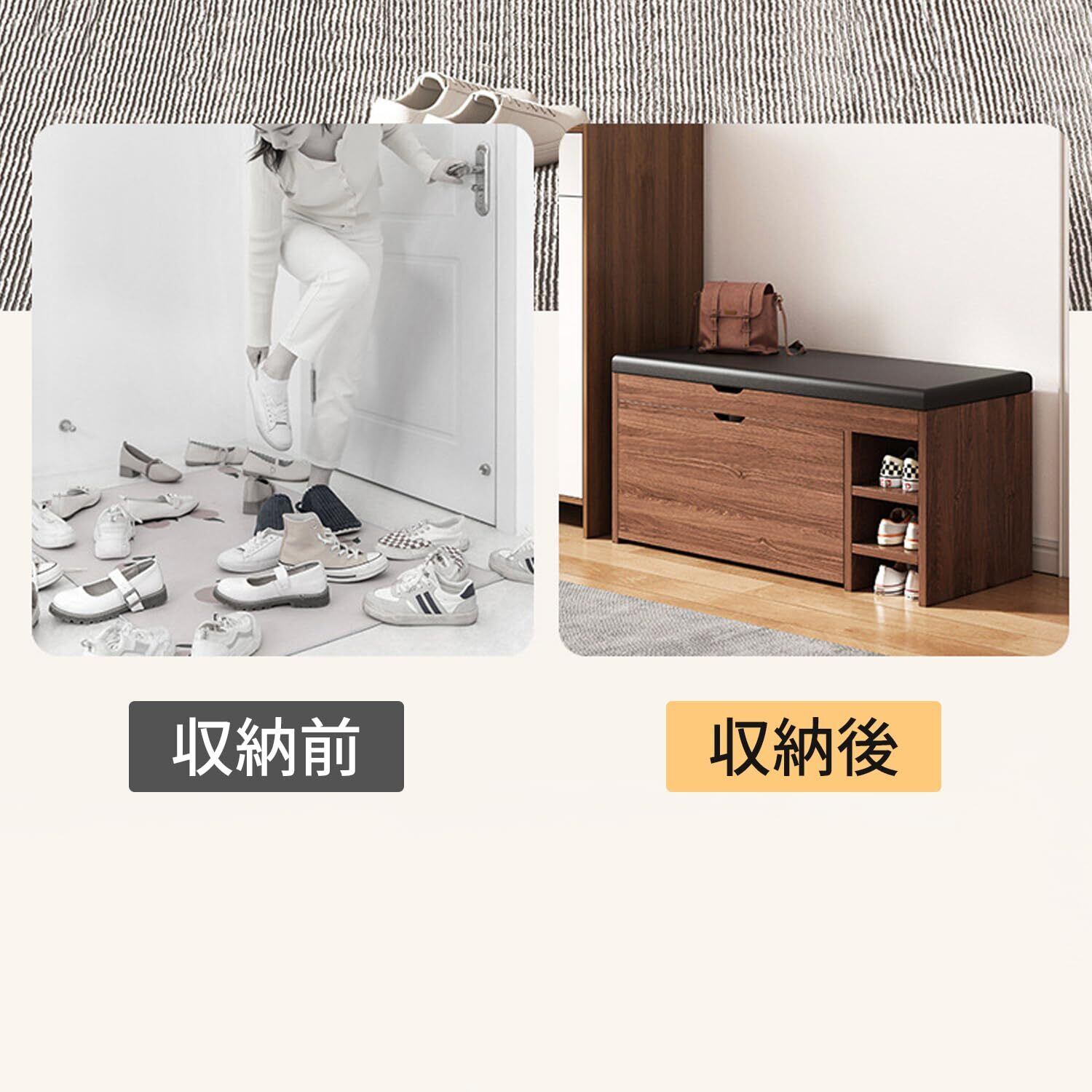 しっかりとした作りで、耐久性に優れています。家族全員が安心して利用できる安定感で、小さなお子様から高齢の方まで快適に靴を履く時間を過ごせます。ドア部分のフリップ収納も便利で、日常使いに最適です!