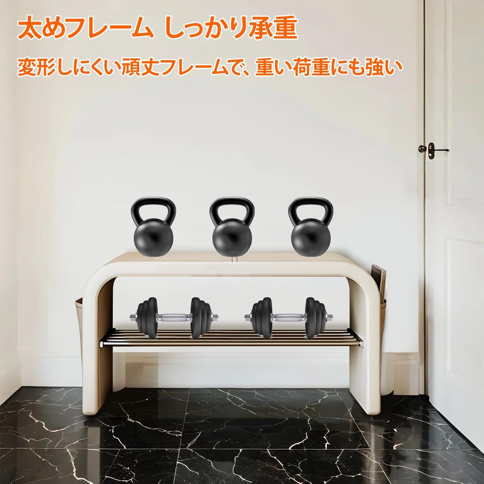 【太いフレームによる強固な承重性能】玄関ベンチの太いフレームは、しっかりとした強度を持っています。大人の体重を軽々と支えることができ、長期間の使用でも変形しません。
