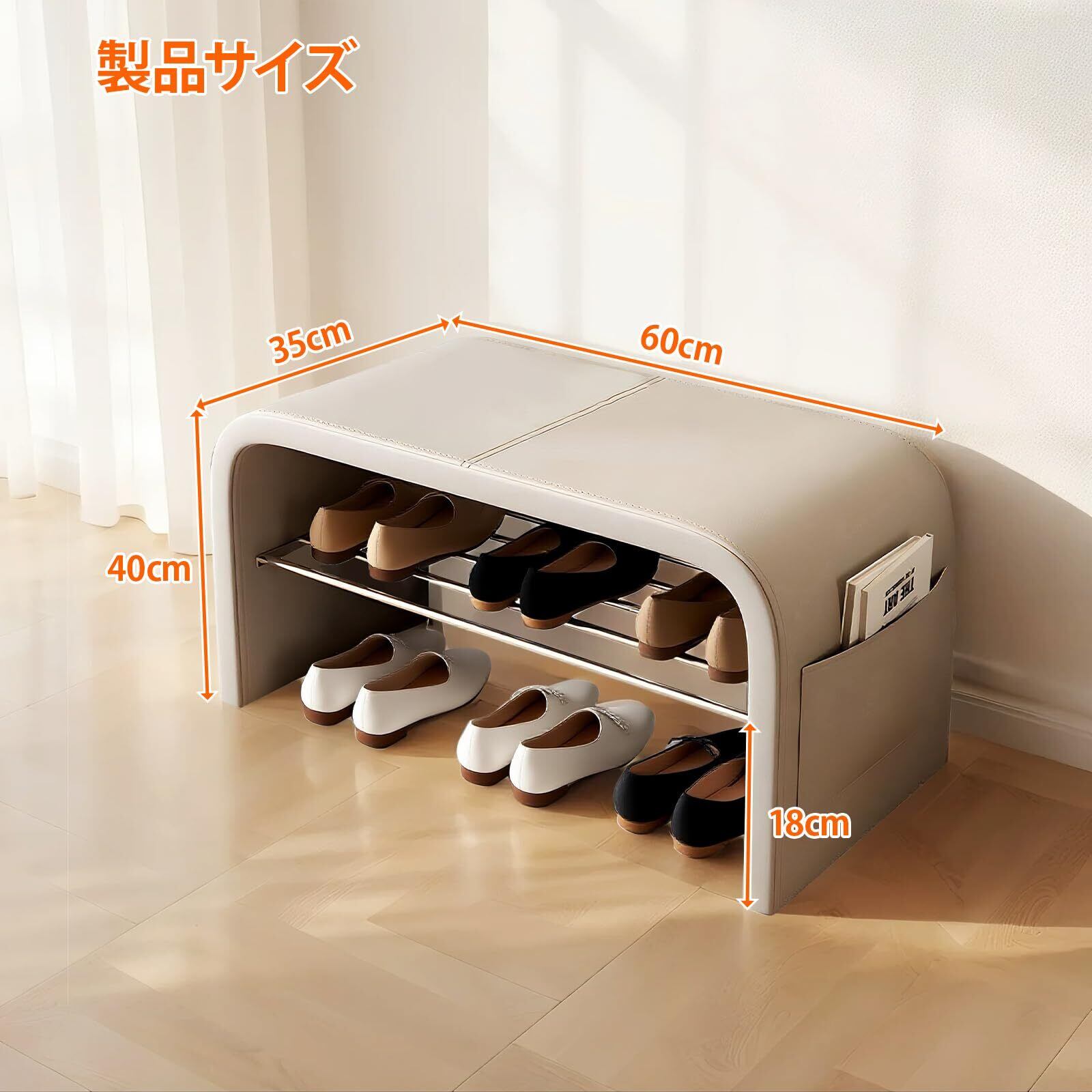 【優質な皮素材の快適性と耐久性】玄関椅子に使用されている優質な皮素材は、柔らかくて肌にやさしく、通気性も高いです。防水・防汚性能があり、日常的な使用でも簡単に拭き取りクリーニングできます。長期間使用しても割れたり、劣化したりせず、美しさと機能性を維持します。