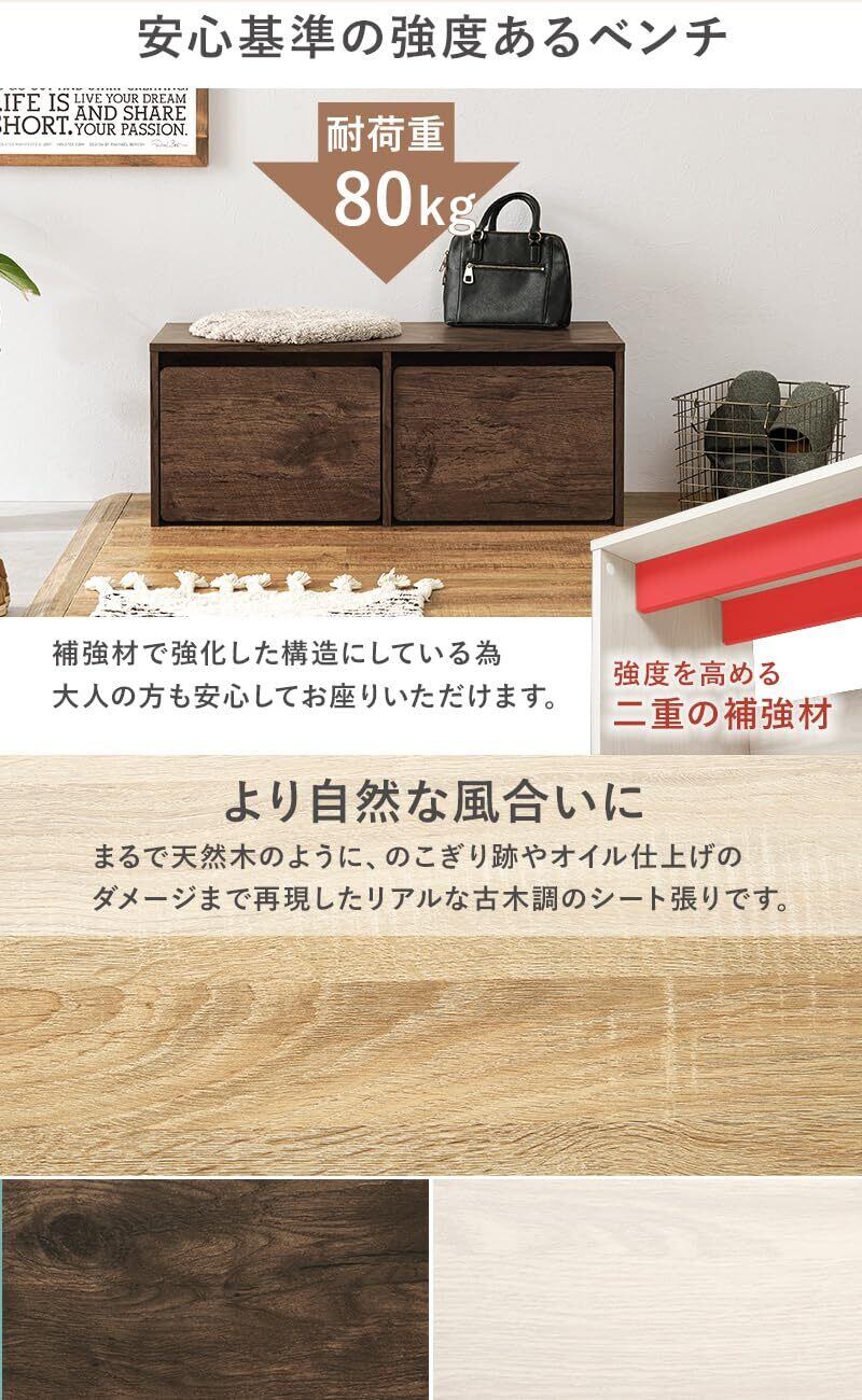 萩原 収納ベンチ 引き出し付き 簡易 デスク 【子供部屋のおもちゃ入れに】耐荷重 80kg 頑丈 セット買い ブラウン 幅90 奥行40 高さ35 RBC-1136BR