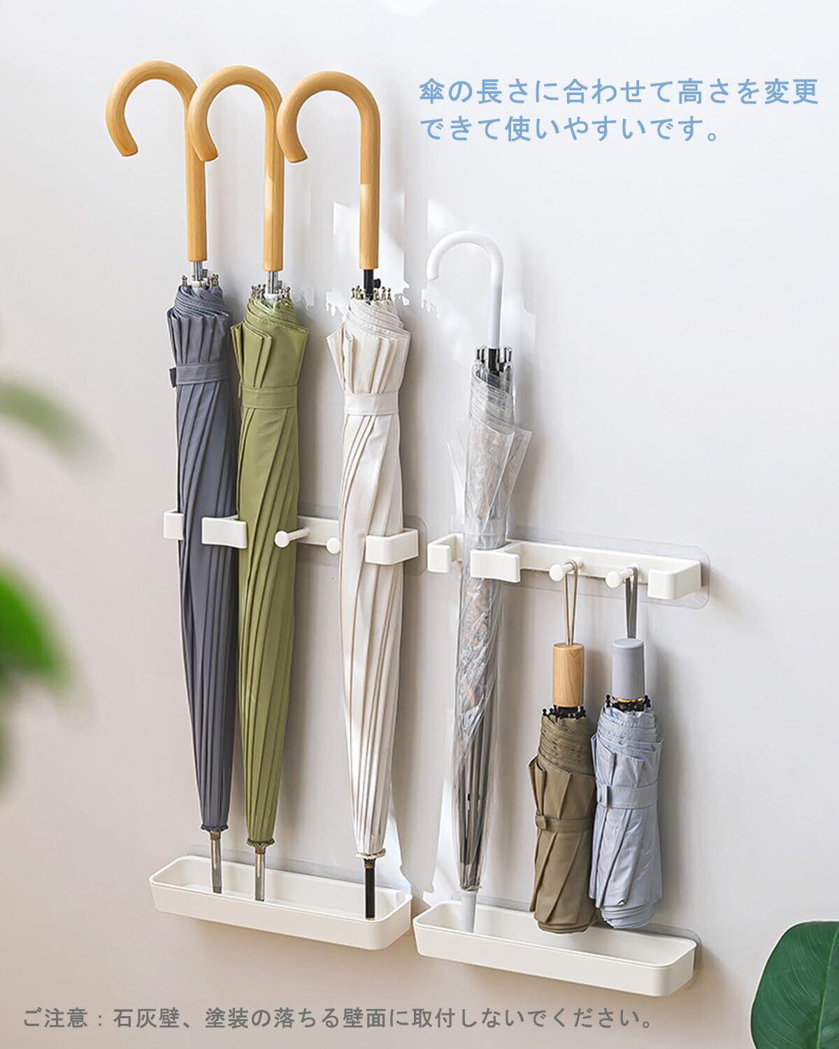【長傘/折りたたみ傘兼用】こちらの傘たての高さは傘の長さに合わせて変更できて、折りたたみ傘だけでなく、長い傘も収納できて使用便利です。