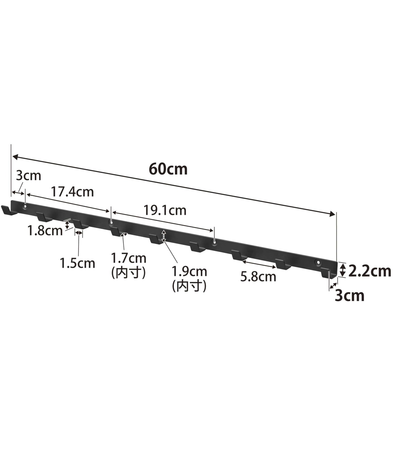 商品サイズ:W60×D3×H2.2cm ▪商品重量:260g ▪内寸 フック:W1.5×D1.7×H1.9cm(1つあたり)