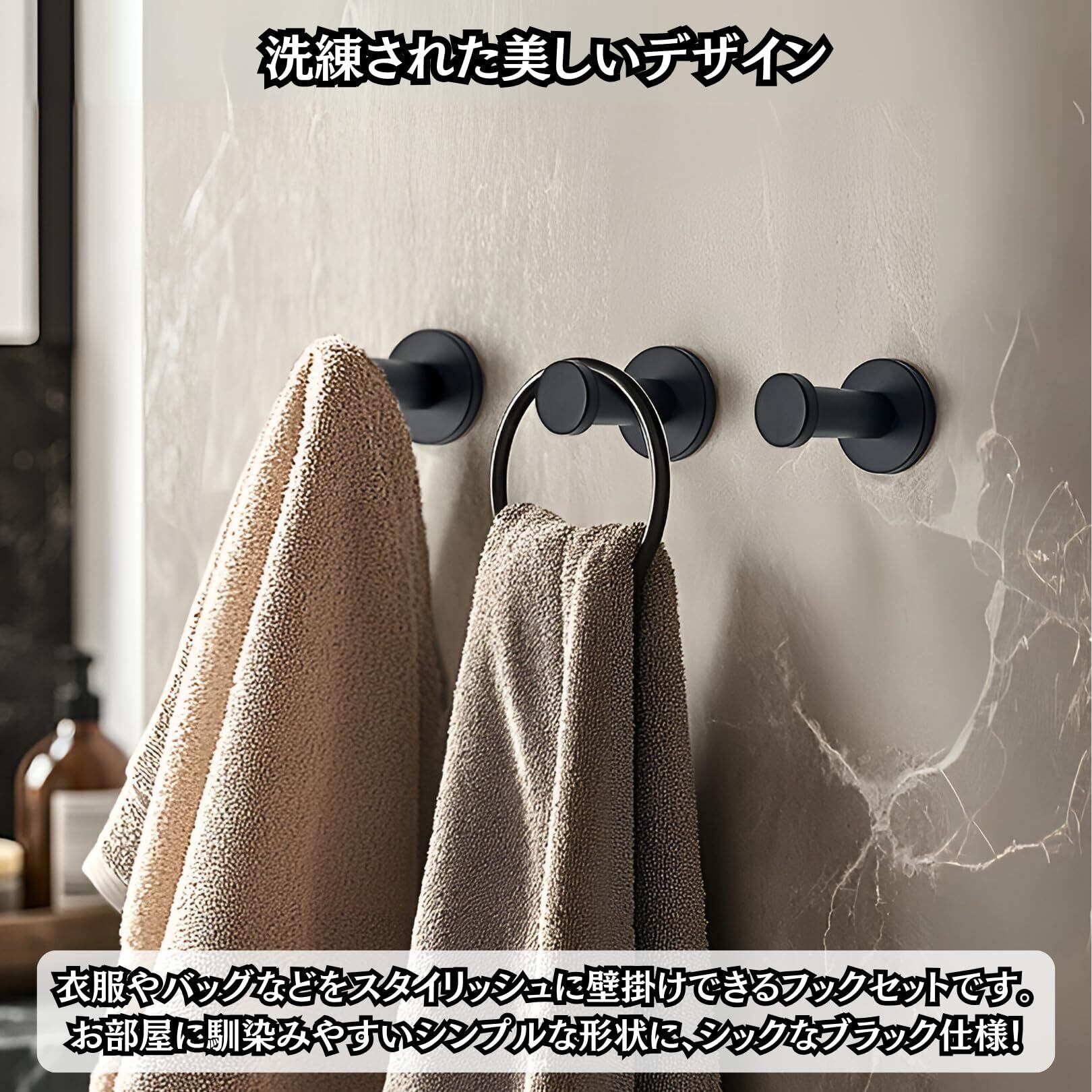 【洗練された美しいデザイン】スタイリッシュな外観で、帽子・衣服・バッグなどをスッキリと吊り下げられるウォールフックセットです。どんなお部屋にも馴染むシンプルなデザインに、シックなブラックカラーとなっております。お部屋のアクセントとして、おしゃれに収納を楽しみたいあなたに!