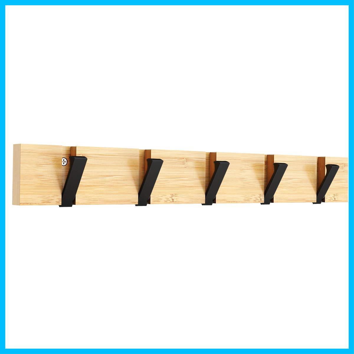 Anjuer ウォールハンガー 壁取り付け式コートラック 5連フック 壁掛けフック 収納家具 物干しハンガー 帽子掛け・洋服掛け・コート掛け 木製(黒フック折り畳み型)