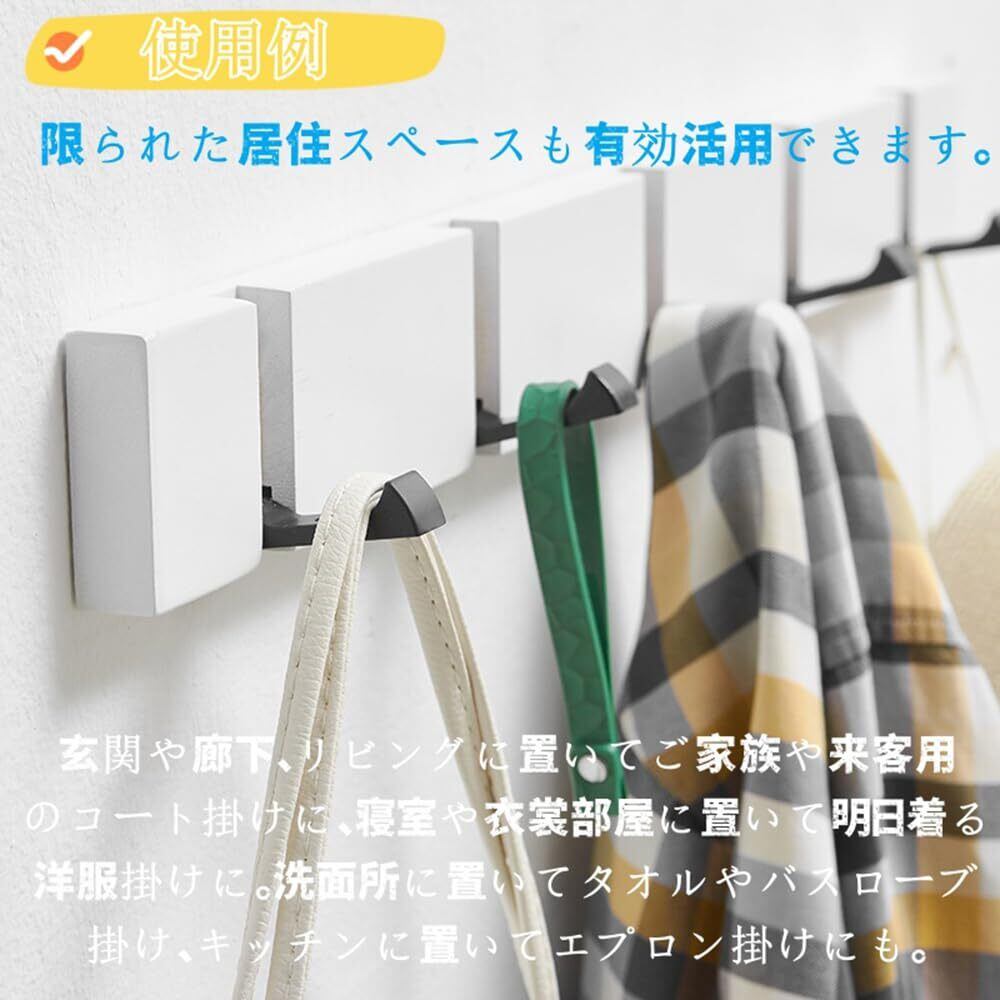 このハンガーは90°回転が可能で、空間に応じてフックの向きを自在に変更できます。使用しないときは、壁側に寄せて隙間を作らず、必要な時にだけ引き出して使える非常に便利な設計です。狭い場所でも実用性を発揮します。