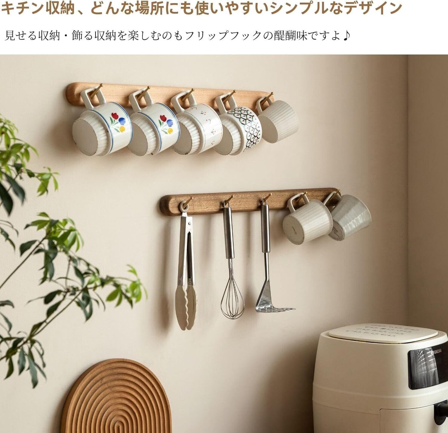 温かみがありオシャレな木製フック、5連 4連 3連選択可能、収納庫の中に、玄関とキッチンにつけます。