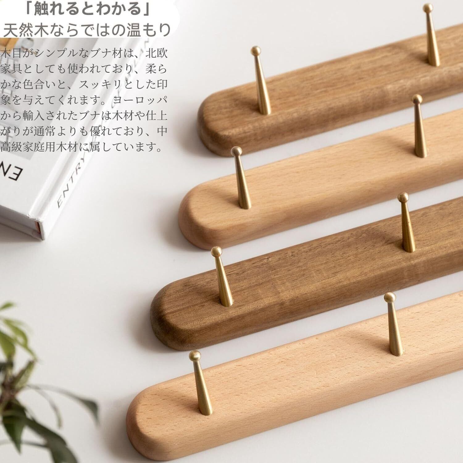 YESWOOD 壁掛け フック木製 ハンガーフック5連 4連 3連 ウォールハンガー 壁取り付け式コートラック キチン収納 収納家具 省スペース 帽子掛け 洋服掛け 100%無垢材 おしゃれ インテリア (4連) | Lulu