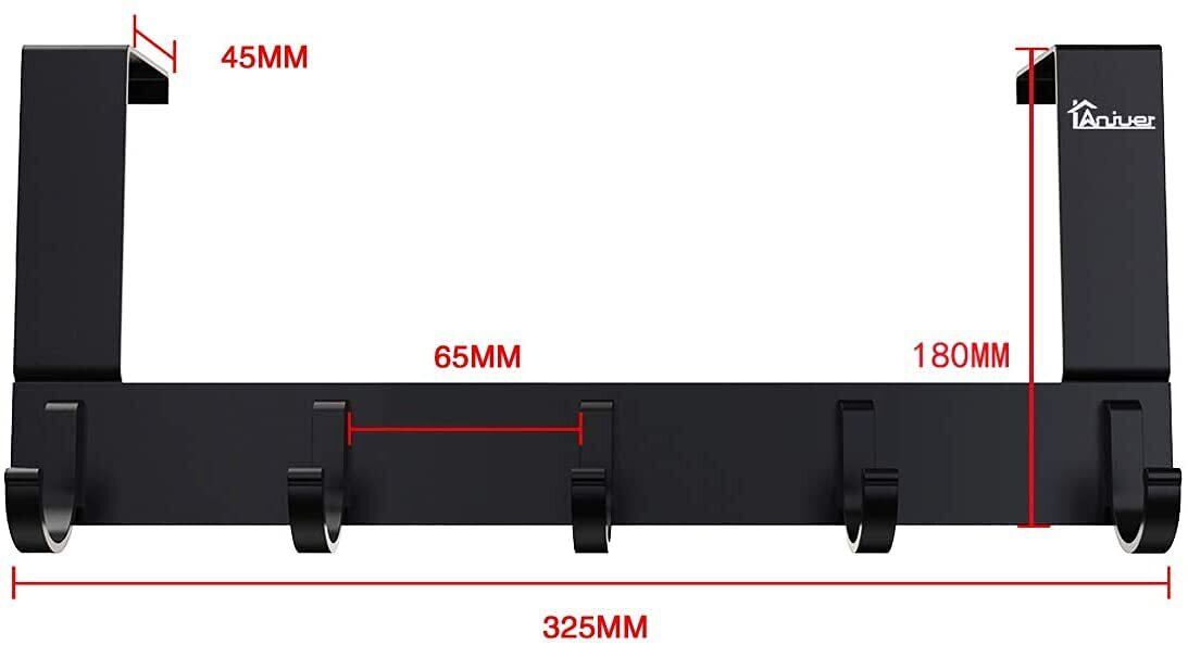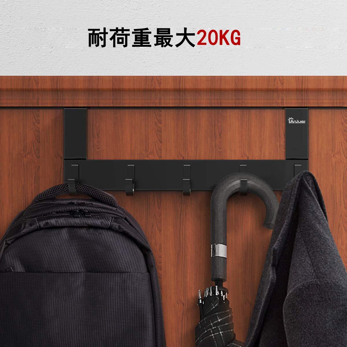 Anjuer ドア掛けフック 5連 ドアハンガー 収納フック ウォールハンガー 帽子掛け 洋服掛け コート掛け アルミニウム合金製 ブラック