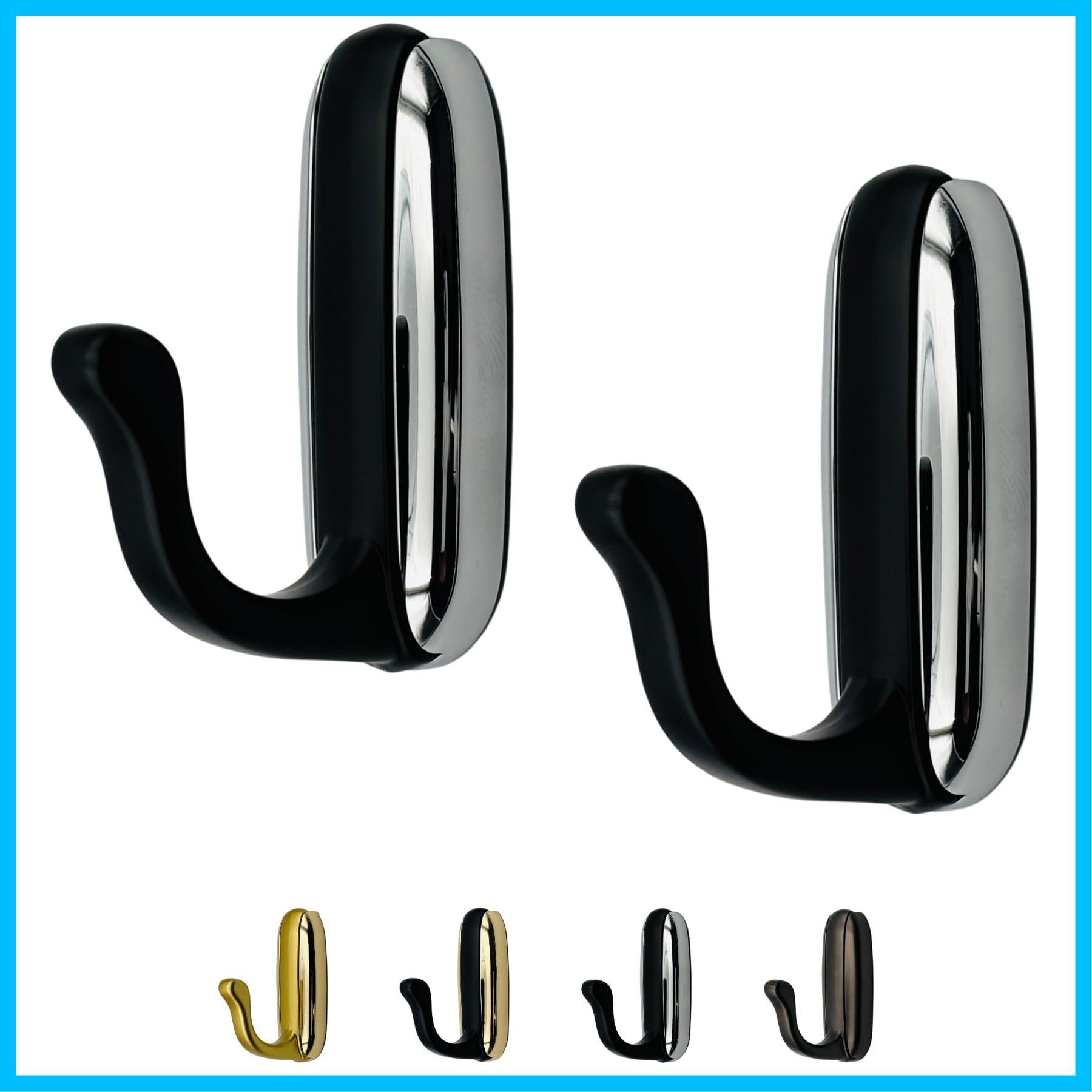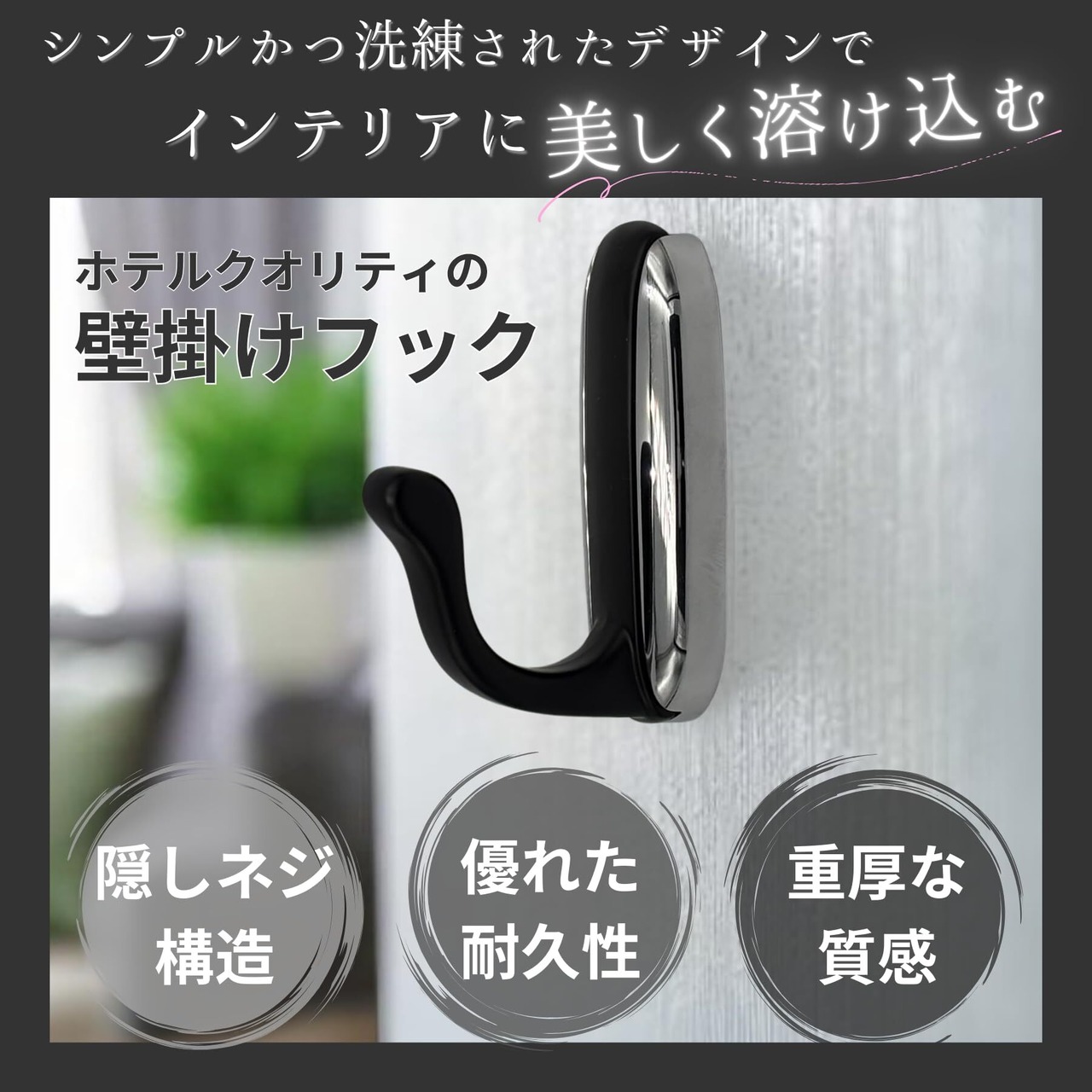 【ホテルクオリティ】モダンウォールフック 2個セット 壁掛けフック コートフック 金属 強力 壁 ウォールハンガー DIY ネジ 金具 ハンガーフック 掃除姫 (ブラック×シルバー)