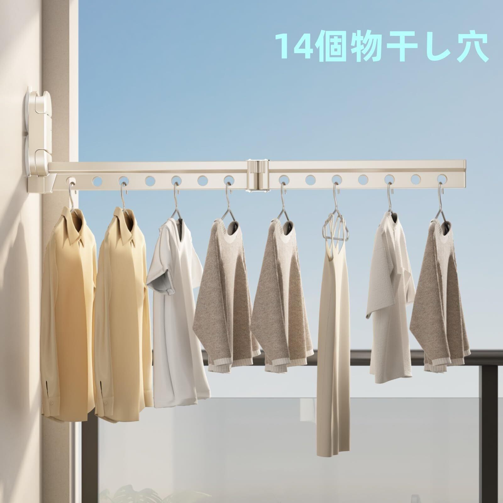 本商品は合計14個のハンガー穴を装備しており、大量の洗濯物や小物を効率的に干すことが可能です。特に室内干しが必要な日や、梅雨時期に大活躍します。タオルや衣類、バッグまでしっかり整理整頓し、スッキリとしたお部屋を保つことができます。
