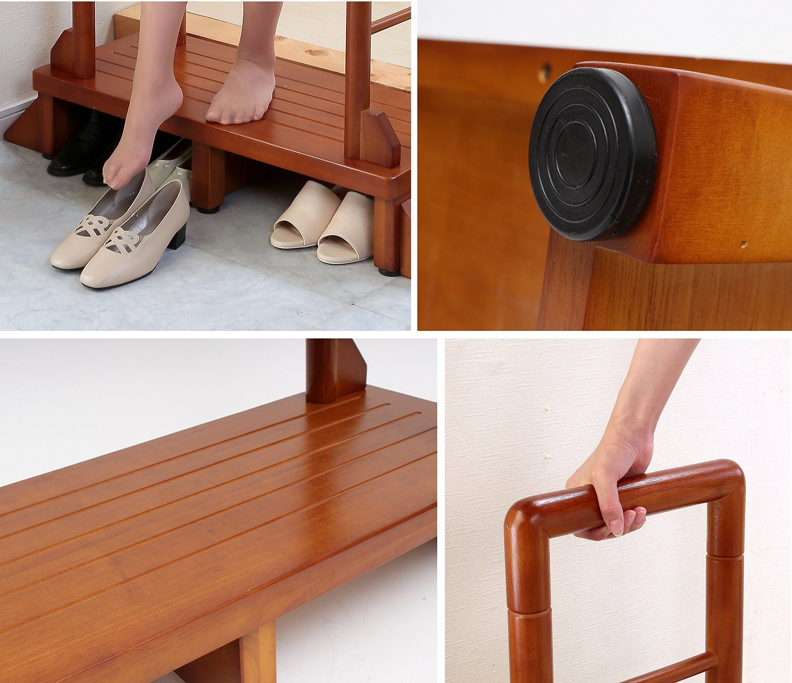 ビータ(Vita) 手すり付き玄関台 ブラウン 幅70×奥行35×高さ78cm 幅60cm つらい段差に 上り下り負担軽減 横倒れ防止 アジャスター付 スリップ防止