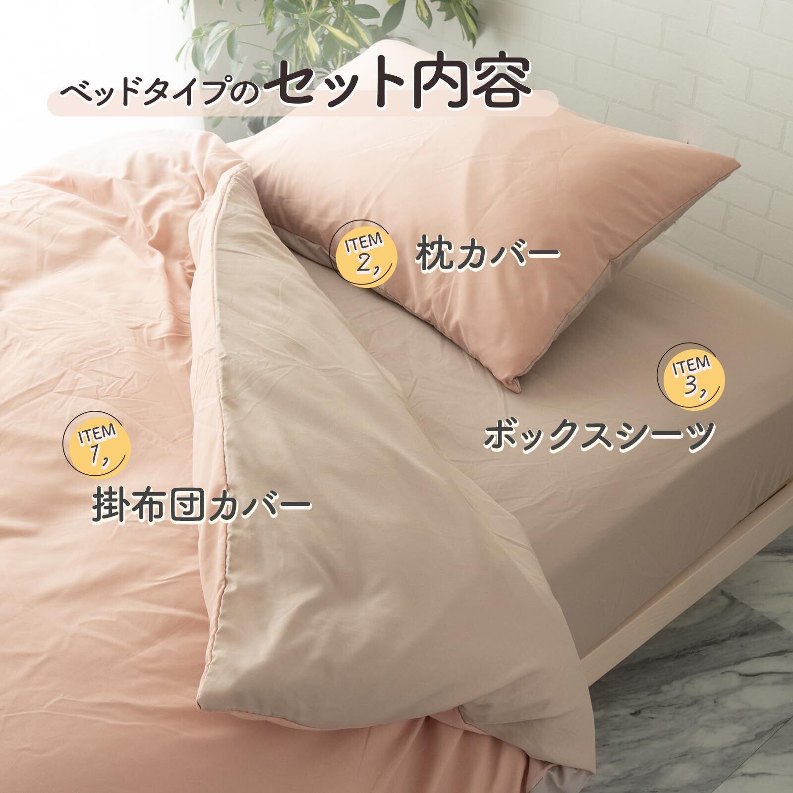【すぐに使える3点セット】掛けカバー、ボックスシーツ、枕カバーの3点セットです。届いた時からコーディネートされた簡単ベッドメイキングができ、すぐにお使いいただけます。