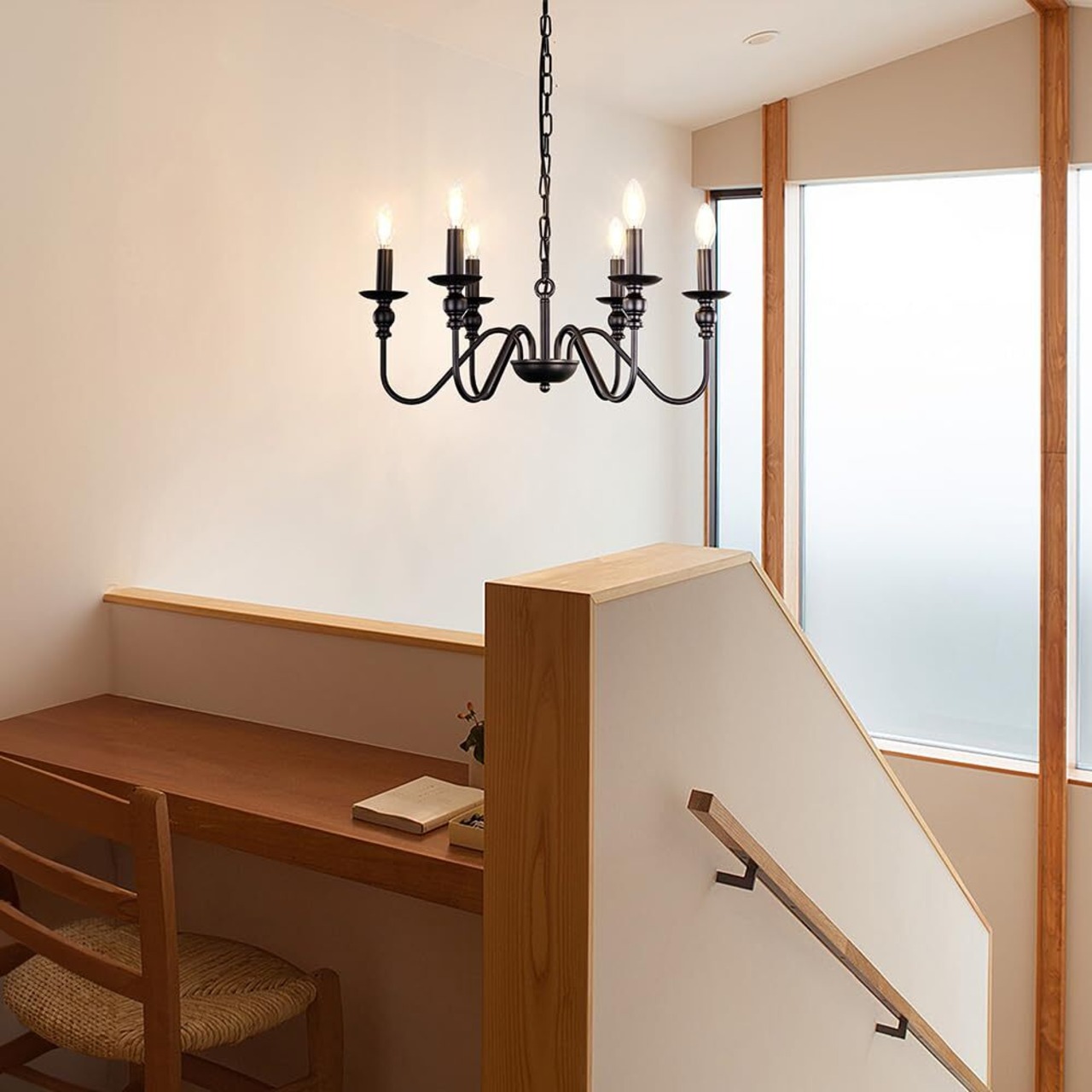 シャンデリア おしゃれ ブラック 6灯 LED対応 E12 ペンダントライト レトロ シーリングライト インテリア 天井照明 照明器具 リモコン無し プレゼント リビング ダイニング 電球別売り SDRA-002-JP | Lulu