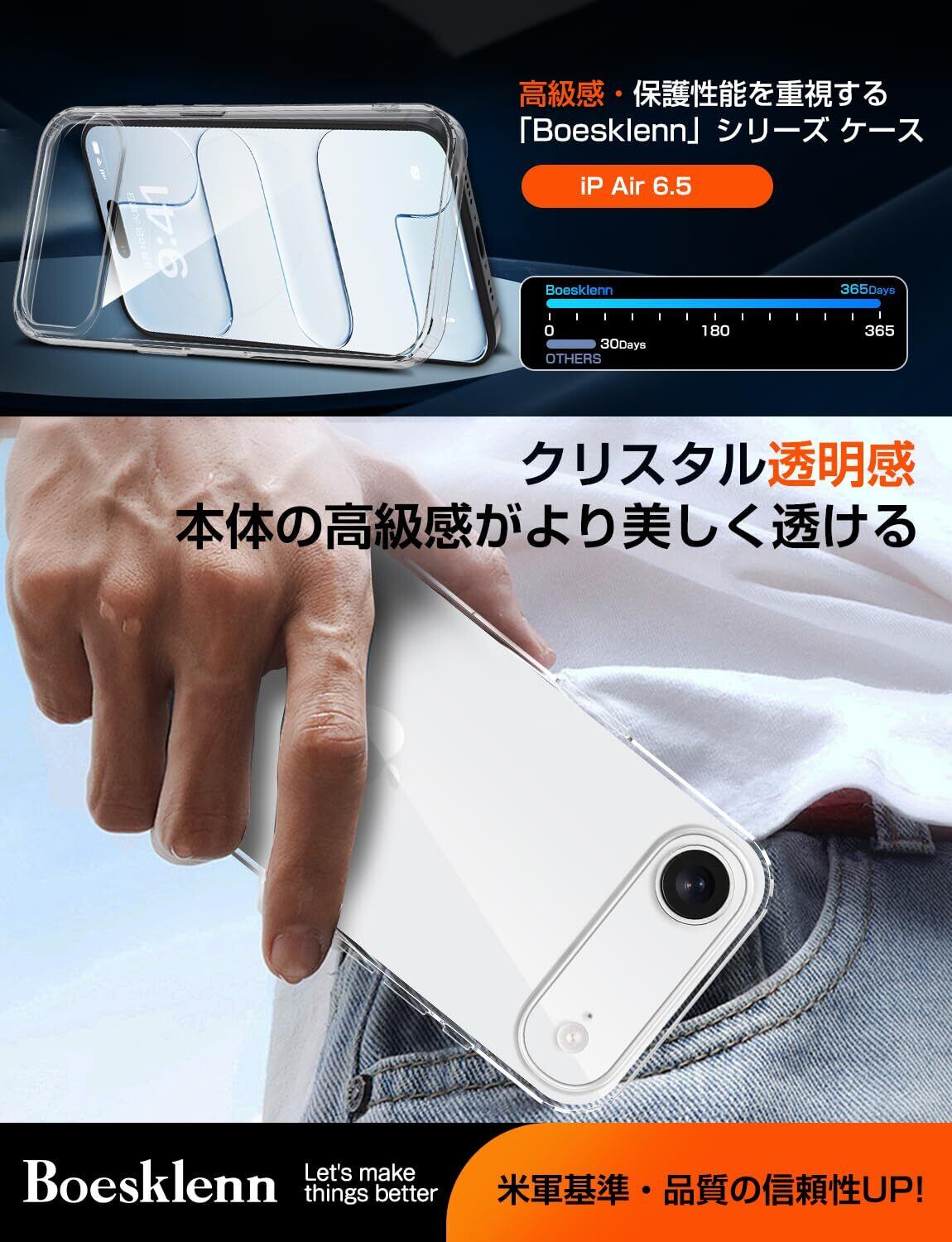 対応 iPhone Air ケース クリア 耐衝撃 MIL規格 軍用認証 高光沢 黄変防止 SGSテスト済み ワイヤレス充電可能 軽量 スリム設計 衝撃吸収 TPU+PC強化 17 Air 用 透明ケース (6.5インチ)