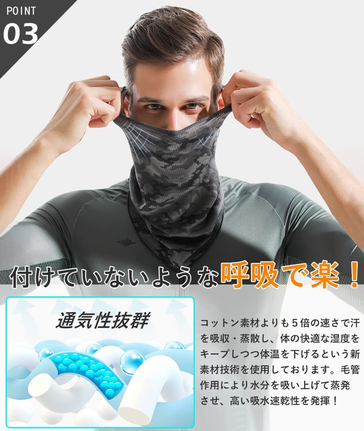 [Andeor] フェイスカバー uvカット 夏用【接触冷感-5℃・付けていないような呼吸で楽】ネックガード 冷感 ネックウォーマー 日焼け防止