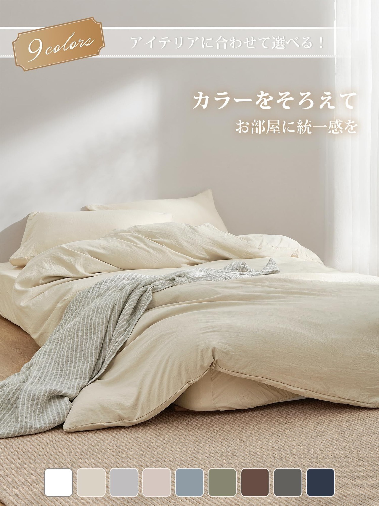 このカバーセットはオールシーズン使用可能な素材を採用。夏は涼感を与え、冬は暖かさを保つため、年間を通じて快適な眠りを提供します。無地でシンプルなデザインは、インテリアを選ばず多様なスタイルにフィットします。