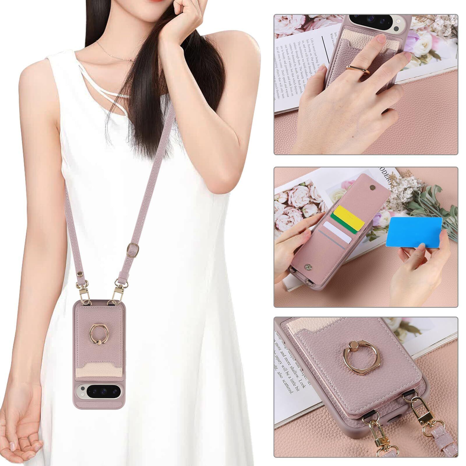 Yuotky for Google Pixel 9A ケース 手帳型 グーグルピクセル9A ケース ショルダー Googleピクセル9A カバー 背面手帳型 ぐーくるぴくせる9a スマホケース リング付き スタンド機能 カード収納 肩掛け 耐衝撃 携帯ケース (ライトパープル) | Lulu