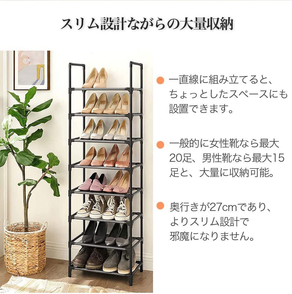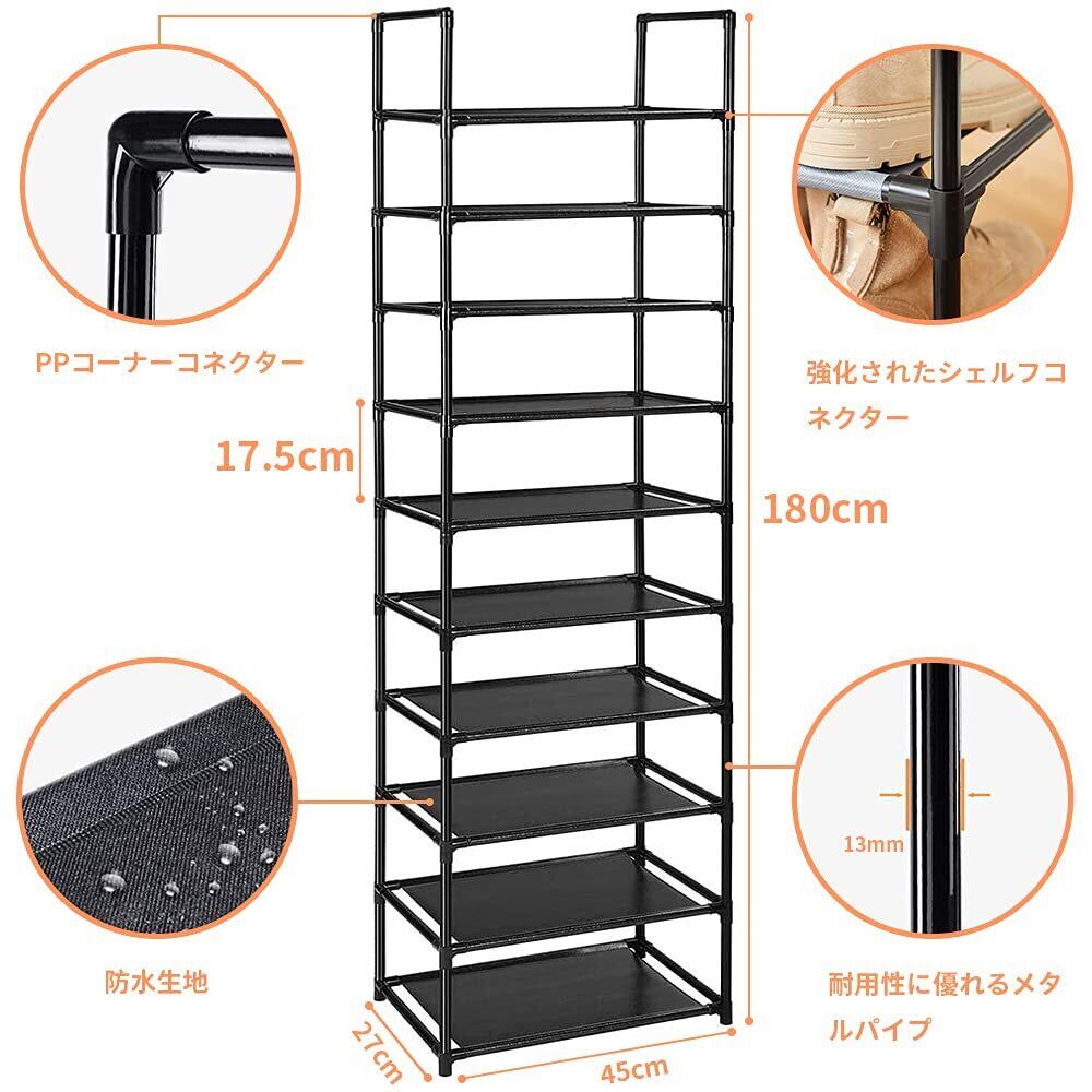シューズラック 10段 18-20足 靴収納 下駄箱 省スペース玄関収納 おしゃれ 靴入れ 靴棚 オーガナイザー 鉄構造 不織布 廊下 クローゼット (A)