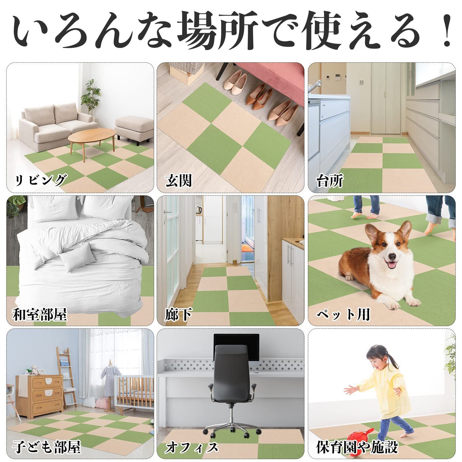 SHIEN ジョイントマット 吸着マット タイルマット【30*30*0.4cm 40枚セット】 ズレない めくれない カーペット 防音マット フローリングカーペット 滑りとめ 防臭防菌 防音保温 洗濯機洗える ペット用カーペット お手入れ簡単 設置簡単 DIY可能 子様・お年寄り・ペット猫犬滑り止め対策 家庭/オフィス/業務用/商用/事務所 (アイボリー*ライトグリーン) | Lulu