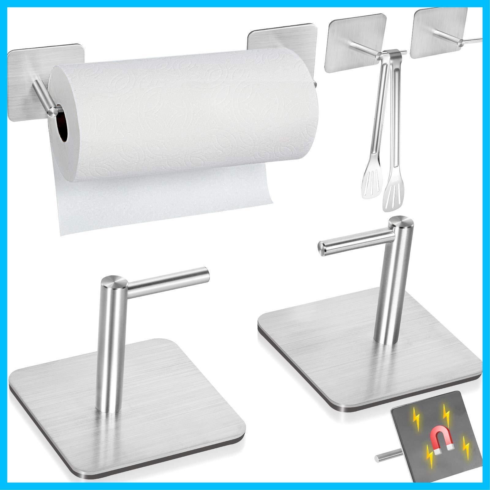 Wowfill キッチンペーパーホルダー マグネット きっちんぺーぱー ホルダー ペーパータオル ホルダー 冷蔵庫 304ステンレス キッチン収納 片手でカット 調節可能 (4個-マグネット-銀) | Lulu