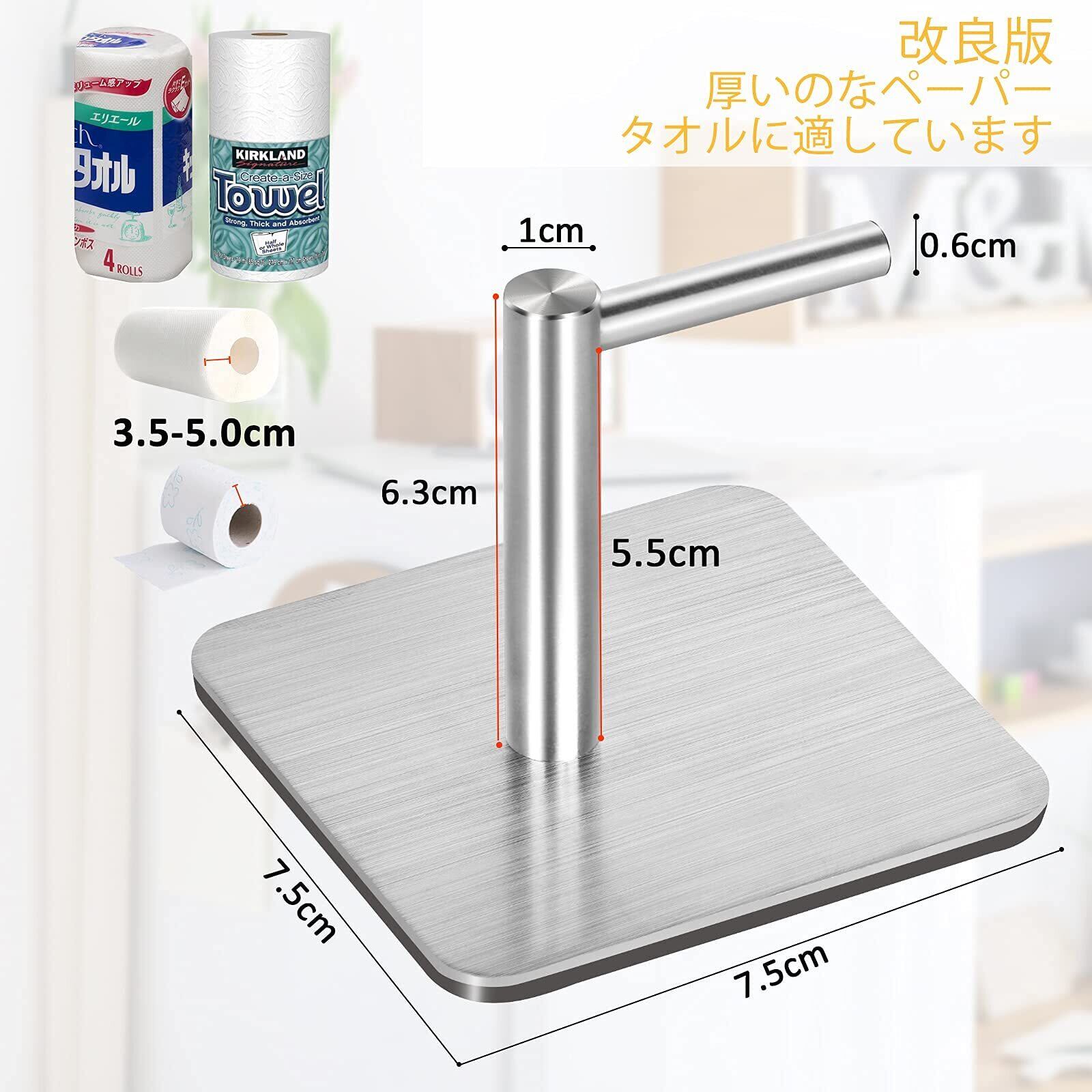 【改良版寸法】長さ7.5CM高さ7.5CM壁面までの長さ6.3CM,内部高さ5.5CM(ペーパータオルが収納できる厚み。一般的に、スーパーや店舗で購入したペーパータオルが適しています)2ペア。