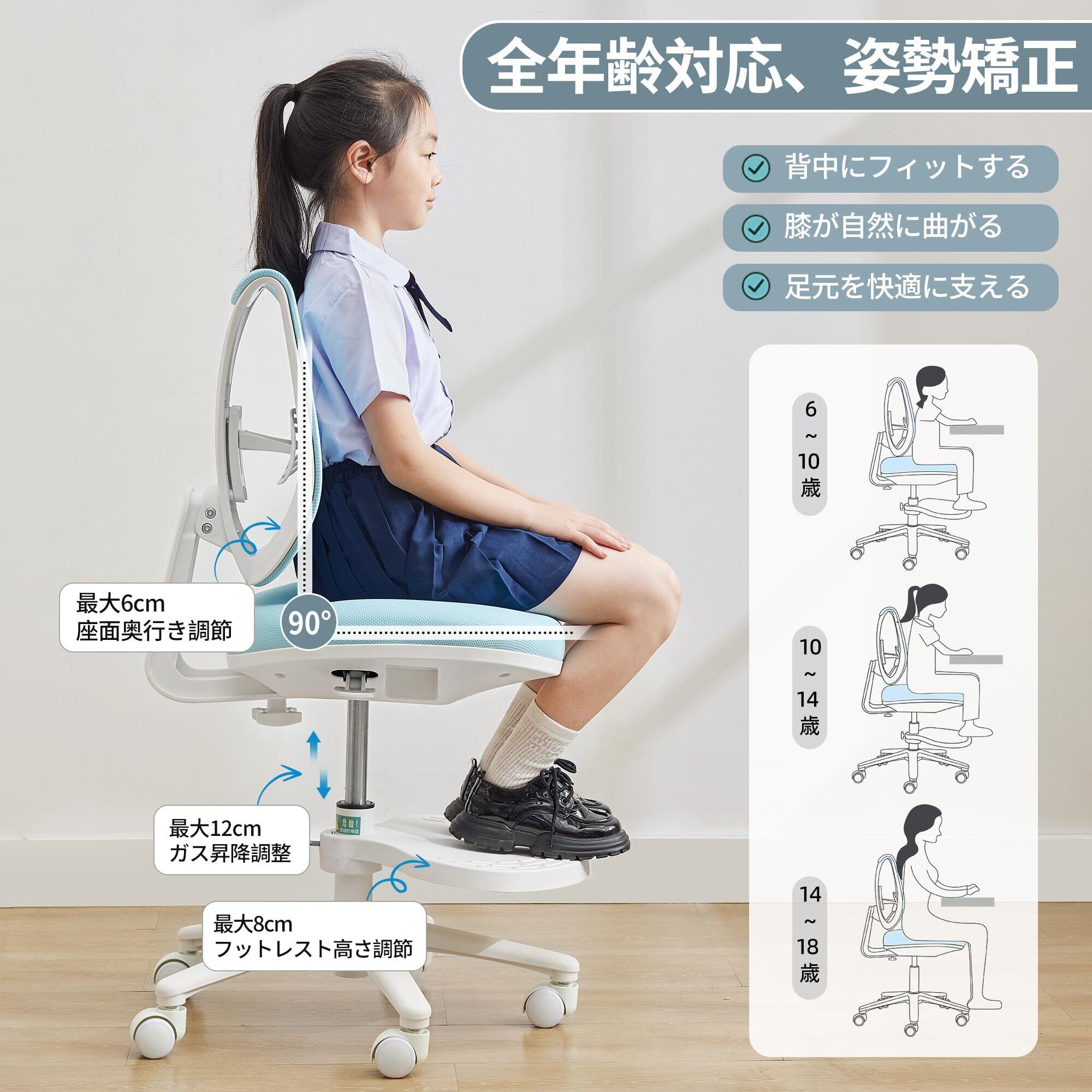 【成長に合わせて調節できる多機能設計】座面の高さ・奥行き、足置きの高さなどを細かく調節できるキッズチェア仕様で、お子さまの成長にしっかり対応。6歳から18歳まで長く使える子供用いすとして、常に正しい姿勢をします。姿勢が整えば、自然と集中しやすい環境が生まれます。