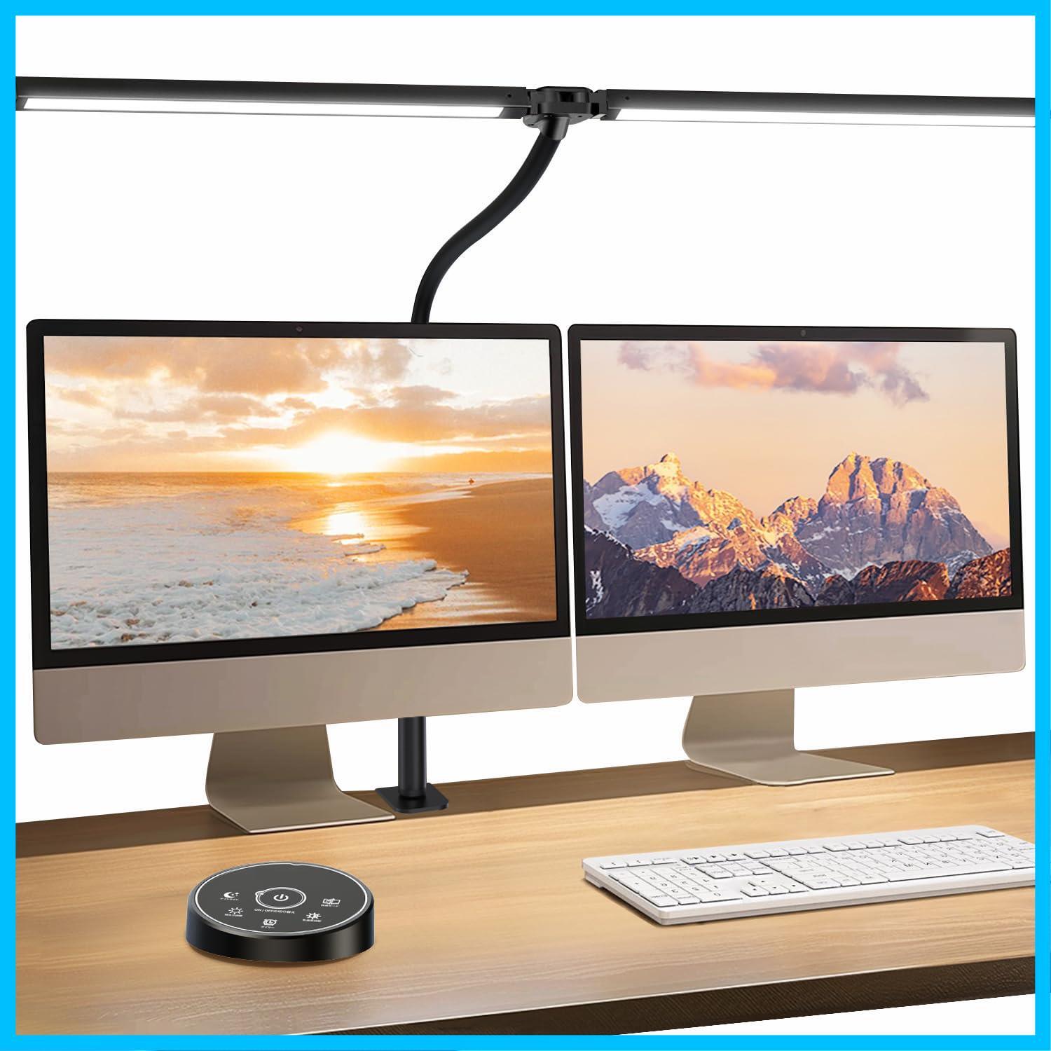 BeaNet デスクライト LED 「無線リモコン・ダブル光源・幅800mm・24W・2000Lx」 5段階調光調色 電気スタンド クランプ「PSE認証済」 幅広 スタンドライト 多角度調節 卓上ライト 目に優しい 読書/勉強/仕事 ブラック BNT-DEL07(T型 ・Pro版) | Lulu