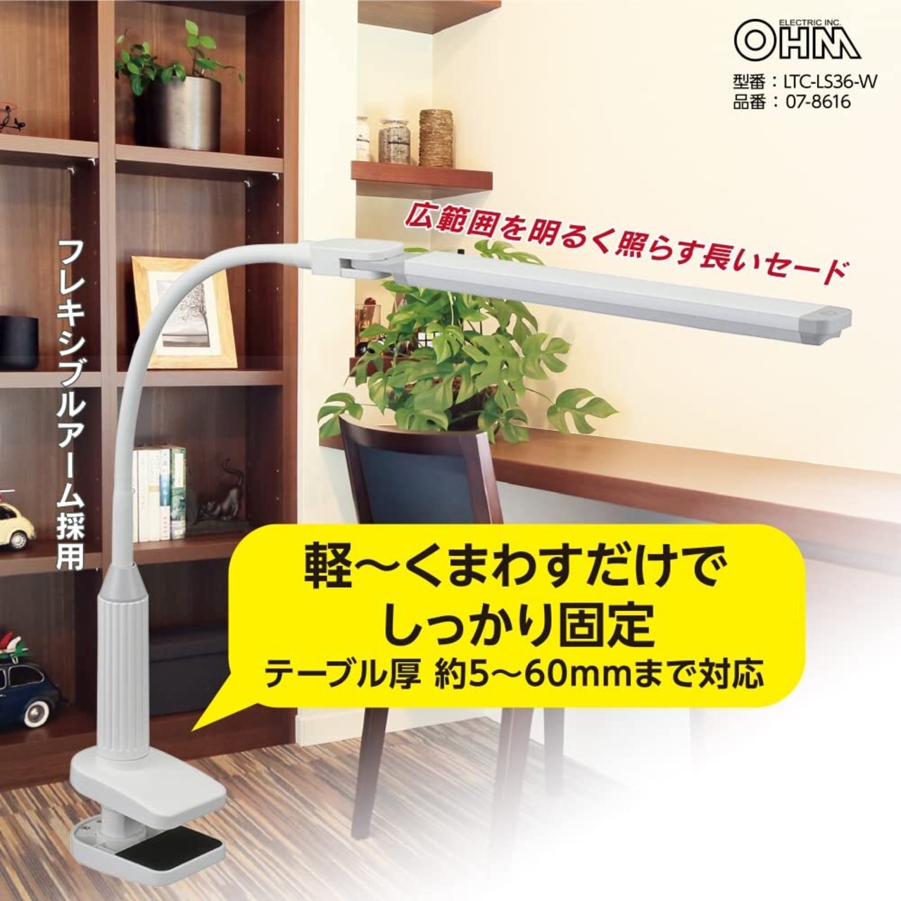 LEDデスクランプ クランプ ホワイト_LTC-LS36-W 07-8616 オーム電機