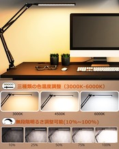 この「LED デスクライト」は、2600ルクスの強力な光を実現し、広範囲を均一に照らします。長くする光源設計により、長時間の使用でも輝きを保ち、快適な作業環境を提供。読書や勉強、テレワークに最適です。