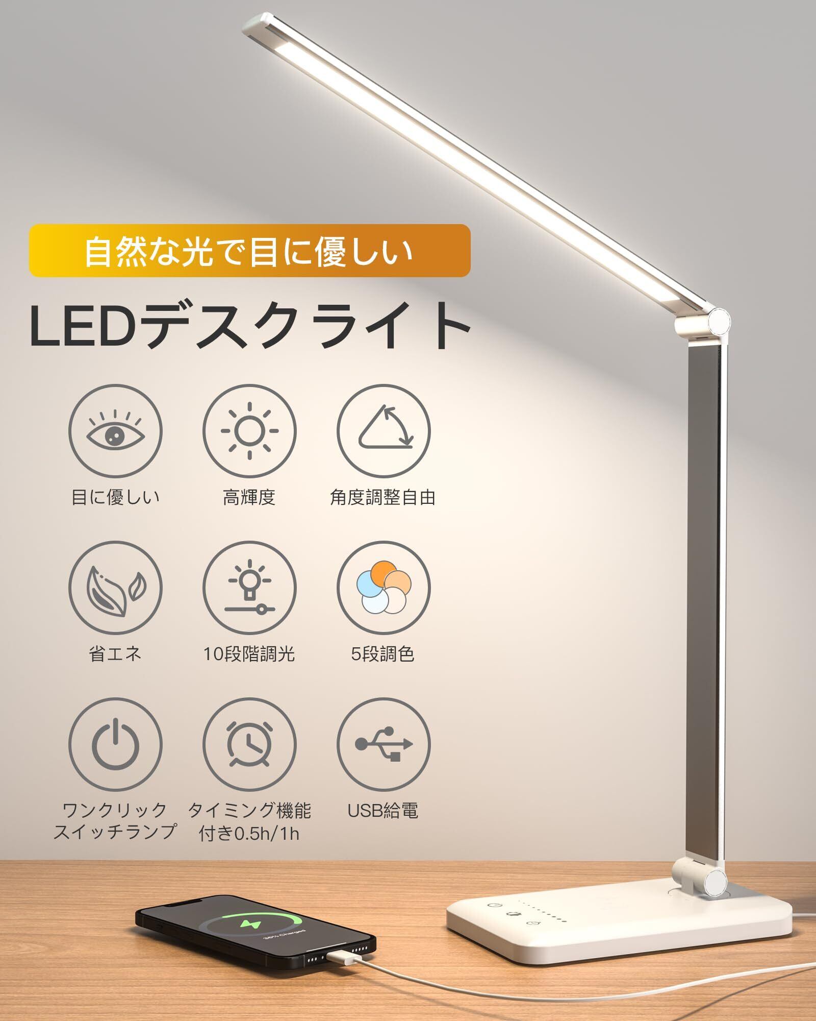 デスクライト LED コードレス 充電式 スタンドライト 10段階調光 5段階調色 タイマー機能・記憶機能 高輝度 USB給電式 電気スタンド 卓上 ledデスクライト 卓上 勉強 机 ライト 明るい 読書灯 学習スタンド 折りたたみ式 コンパクト 省スペース