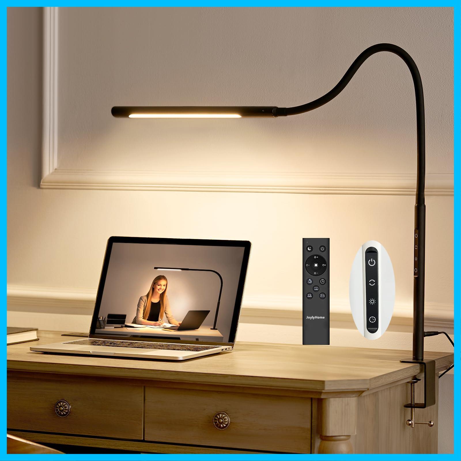 JoylyHome デスクライト LEDクリップライト 【無線リモコン操作、高輝度、色温度と明るさを調整可能、タイマー機能】1150mmの長い灯臂、多角度調整可能で、デスクスペースを節約できます。特に作業用照明、デスク照明、学習用デスクライト、読書用ライトとして最適です ブラック | Lulu