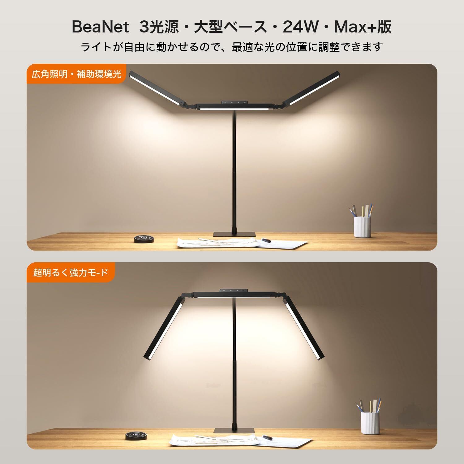 【3光源設計・T型Max+版・幅98cm】BeaNet 24W LEDデスクライトは、超高輝度LEDビーズを搭載した独特の3灯式設計です。明るく強力、幅広い照明がテーブルトップ全体を照らします。空間全体を同時に照らします。光は均一で柔らかく、ストロボも青い光も多重影もなく、目を保護する。消費電力:24W [PSE認証済]。