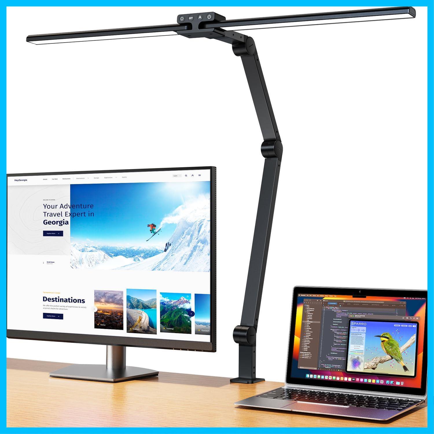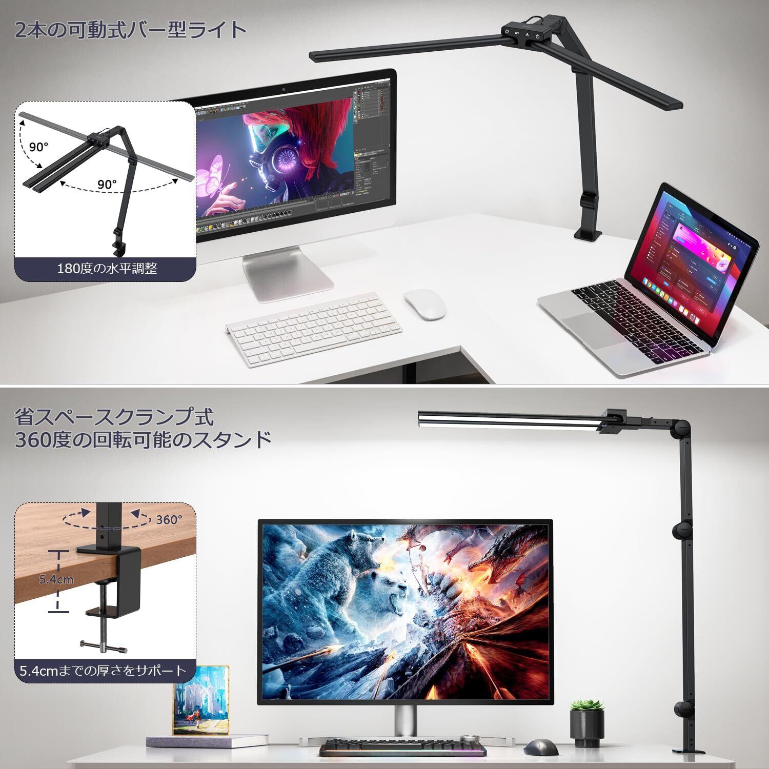 デスクライト LEDダブルライトバー 80CM幅広い電気スタンド KableRika可動域広いアームライト クランプ式卓上ライト360度回転可能 おしゃれ タッチパネル 色温度4段 階明るさ4段階 自動調光 30分タイマー RA95 テレワーク 勉強 細かい作業 ブラック | Lulu