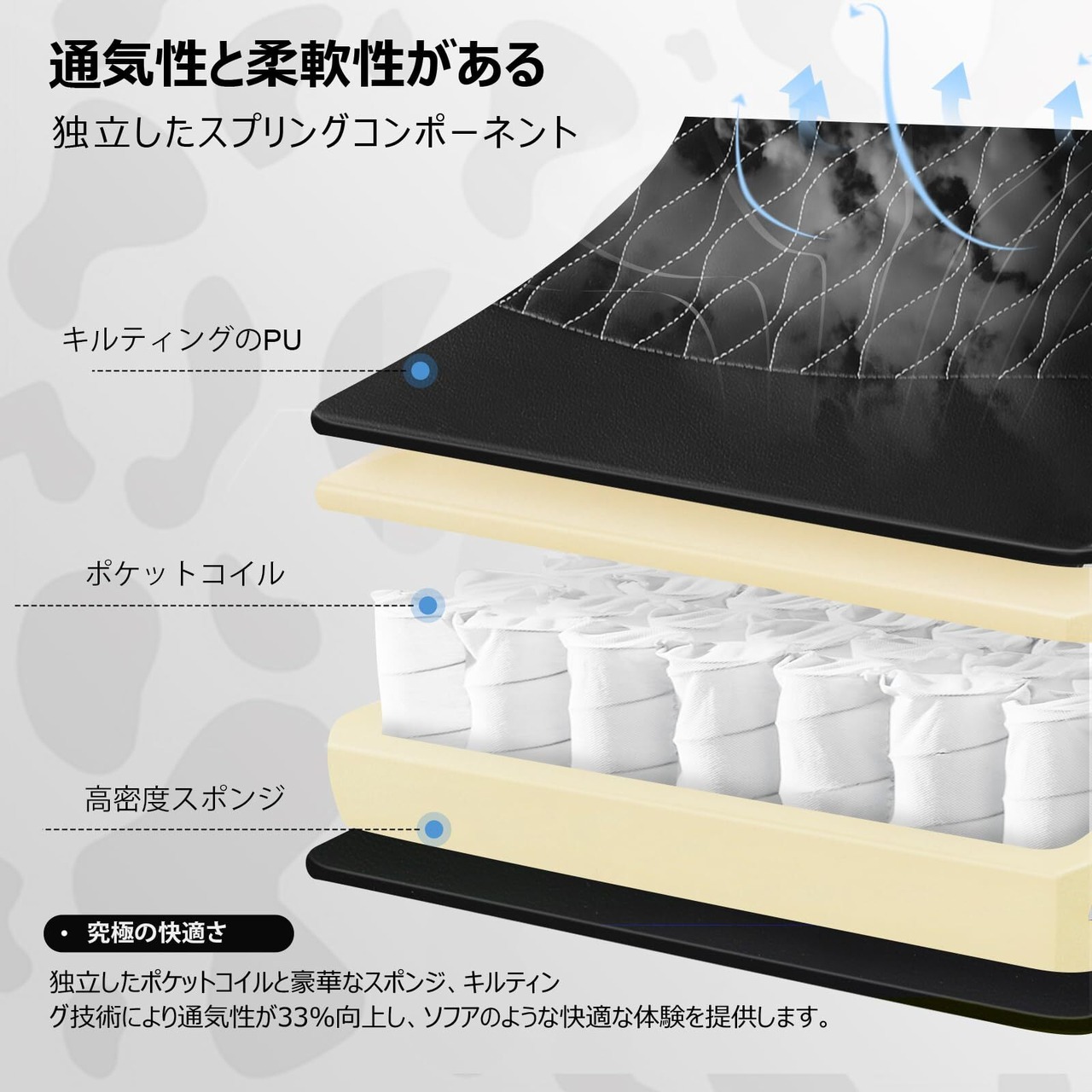 【ポケットコイル内蔵&高品質な非再生ウレタン】先進のポケットコイルと高品質の非再生ウレタン技術を採用して、ダブルの座り心地をご提供いたします。ポケットコイルはを提供し、非再生ウレタンはエコな素材で、安心感を提供します。