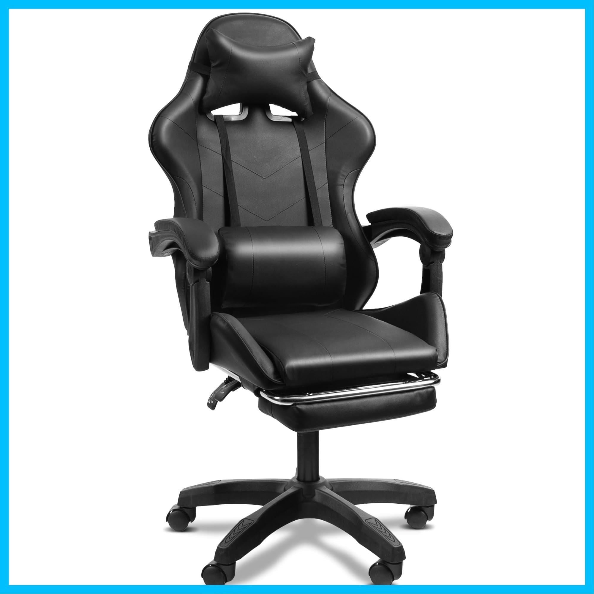 DoubleTT ゲーミングチェア ゲーム用チェア オフィスチェア デスクチェア パソコンチェア オットマン付き 人間工学 165度リクライニング機能 ハイバック テレワーク椅子 PCチェア (ブラック) | Lulu