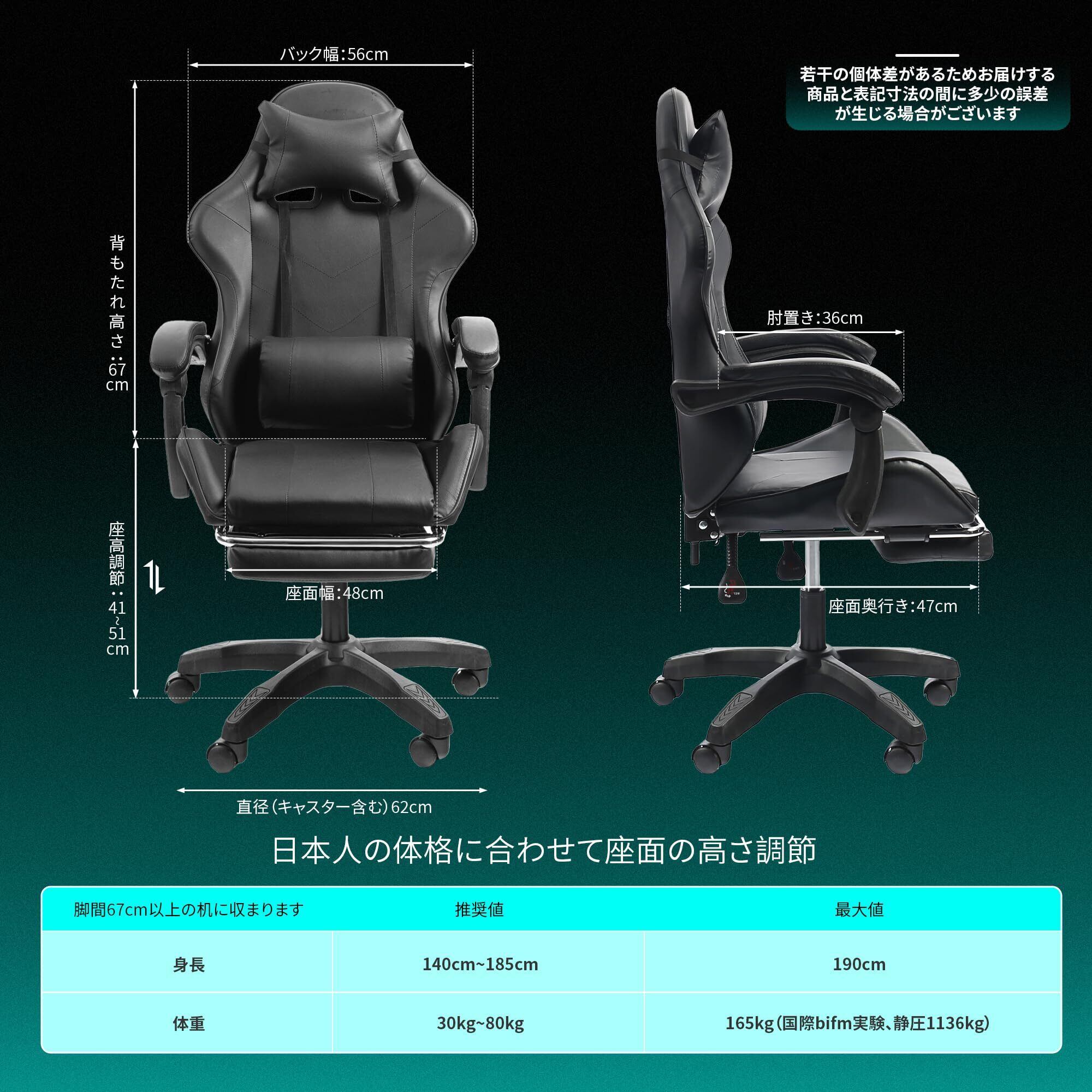 このゲーミングチェアは、安定感のある作りで、幅広い体型の方にフィットします。お部屋のスペースに合わせやすいサイズ設計となっており、長くご愛用いただける耐久性を兼ね備えています。非常に快適で、あなたのゲーム体験を一層高める逸品です!