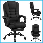 ファブリック製ゲーミングチェア、人間工学デザインのハイバックオフィスチェア、大型エグゼクティブチェア、高さ調節可能・フットレスト&ランバー付き、360度回転・跳ね上げ式アームレスト、大人用,ブラック | Lulu