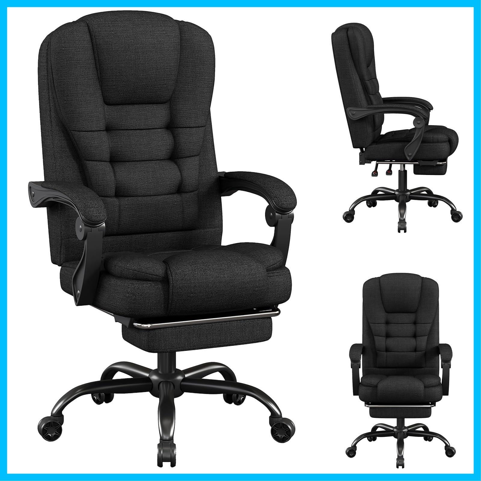 ファブリック製ゲーミングチェア、人間工学デザインのハイバックオフィスチェア、大型エグゼクティブチェア、高さ調節可能・フットレスト&ランバー付き、360度回転・跳ね上げ式アームレスト、大人用,ブラック