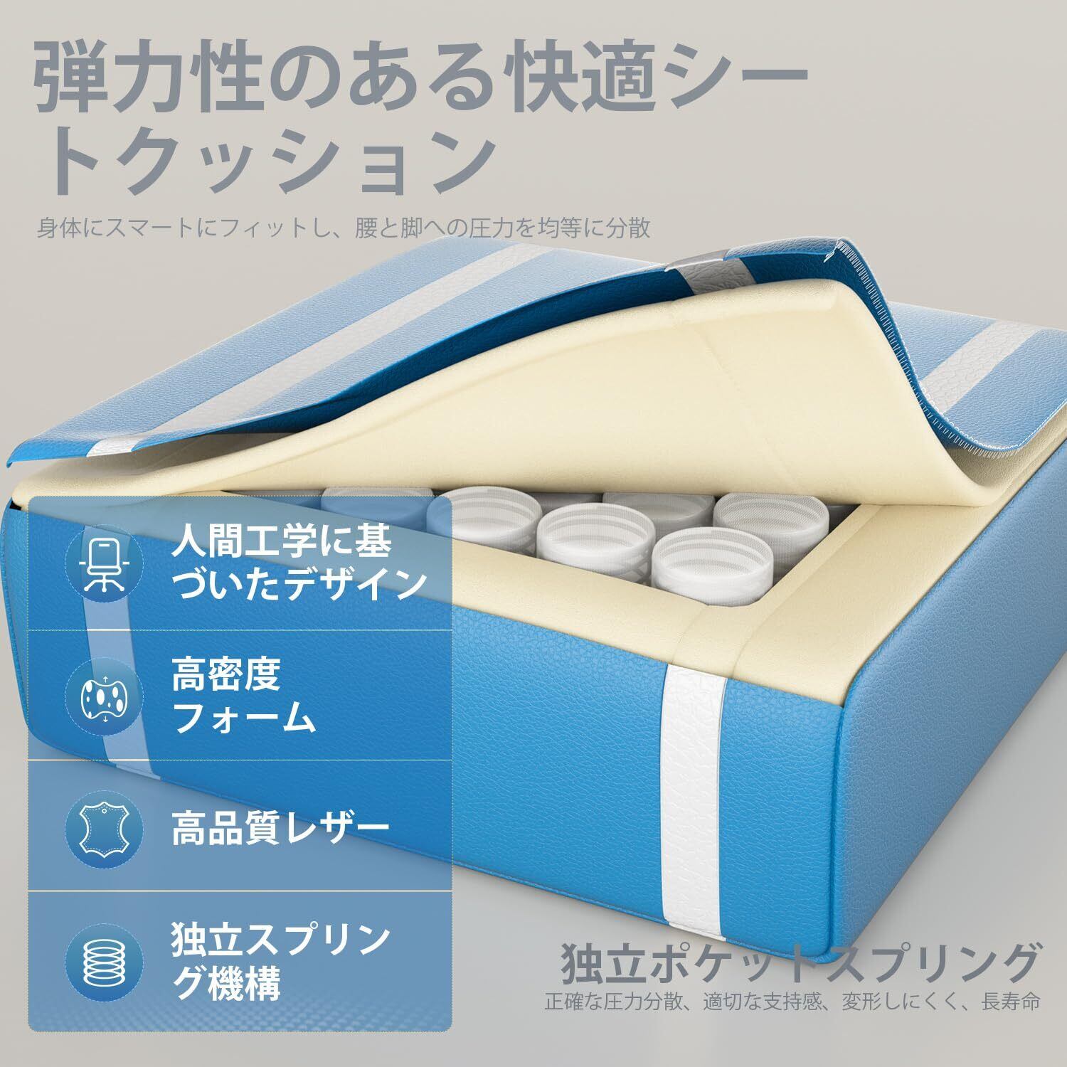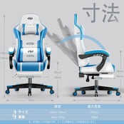 HLFURNITUREのゲーミングチェアは、青と白のスポーティなデザインが際立つ一品です。リクライニング機能とフットレストが搭載されており、ゲームや仕事の合間にリラックスできる姿勢をサポートします。ハイバックレストとヘッドレストが身体全体をしっかりと支え、長時間の使用でも快適です。
