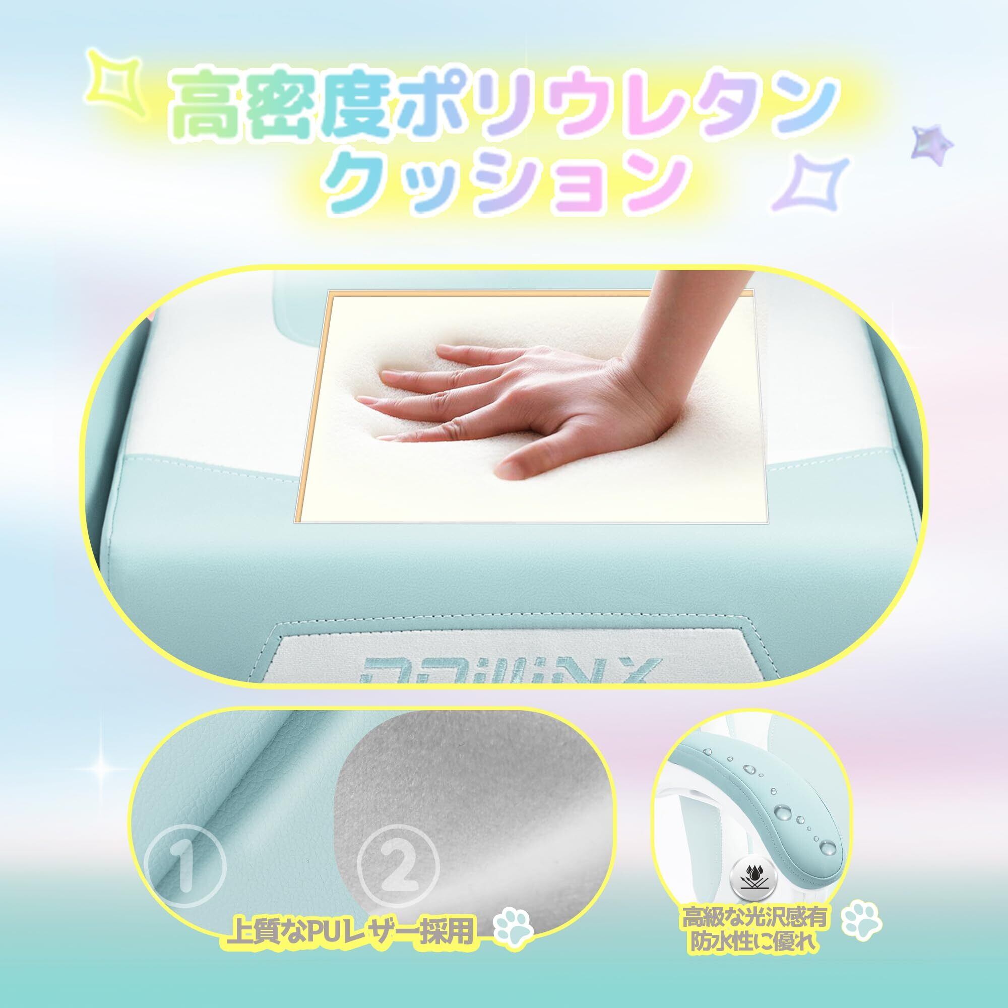 Dowinx ゲーミングチェア 水色 白 可愛い かわいい にゃんこ 猫耳 ヘアピン 鈴付き 猫柄 pc/オフィスチェア ゲーム用 パソコンチェア 幅広 通気性 リクライニング ハイバック 昇降アームレスト PUレザー LS-665509