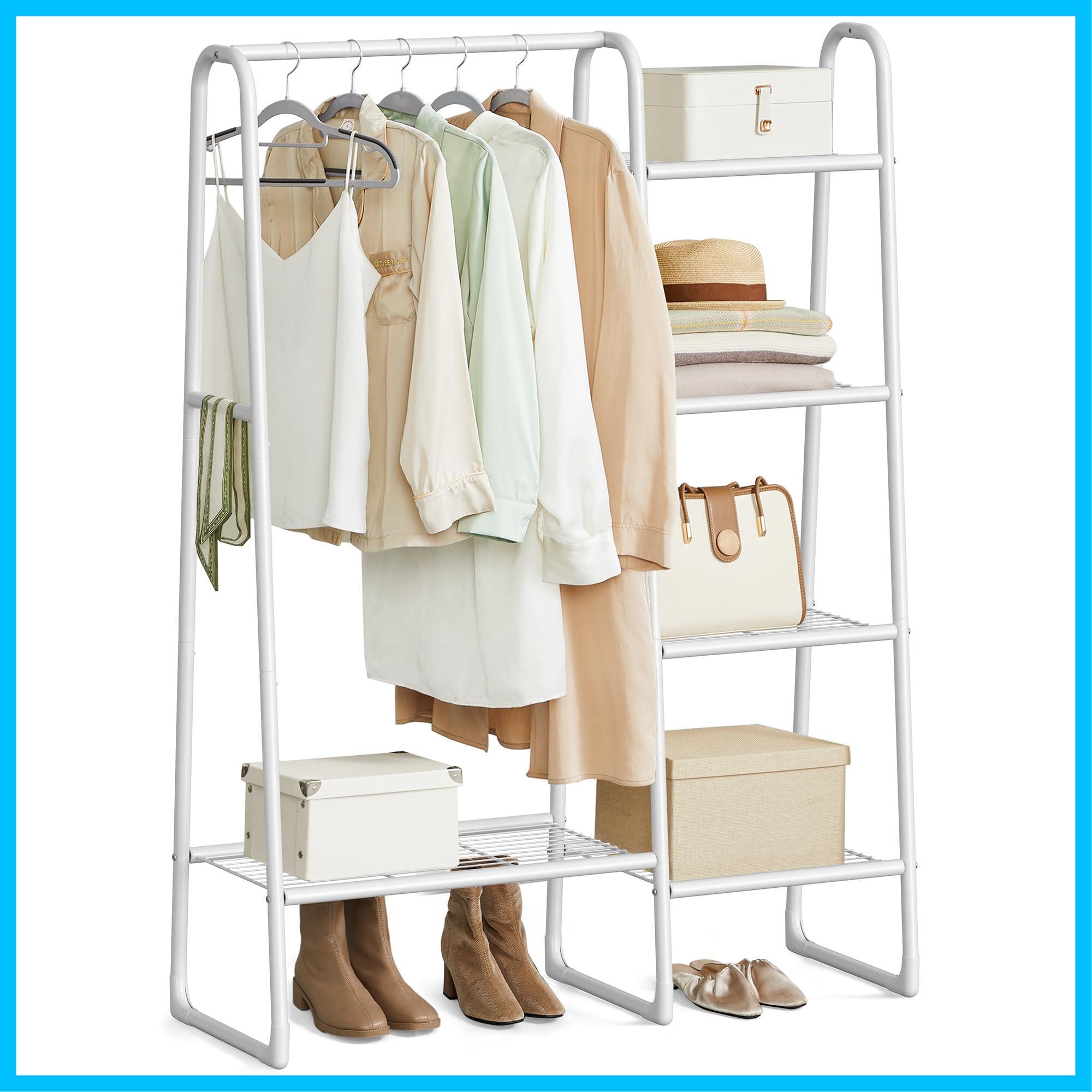 SONGMICS ハンガーラック ラック付き衣装ラック コート/洋服掛けパイプハンガー マルチハンガー 頑丈 幅101.7cm 大容量 衣類収納 安定性 シンプル おしゃれ 組立簡単 ホワイト HSR138W01 | Lulu
