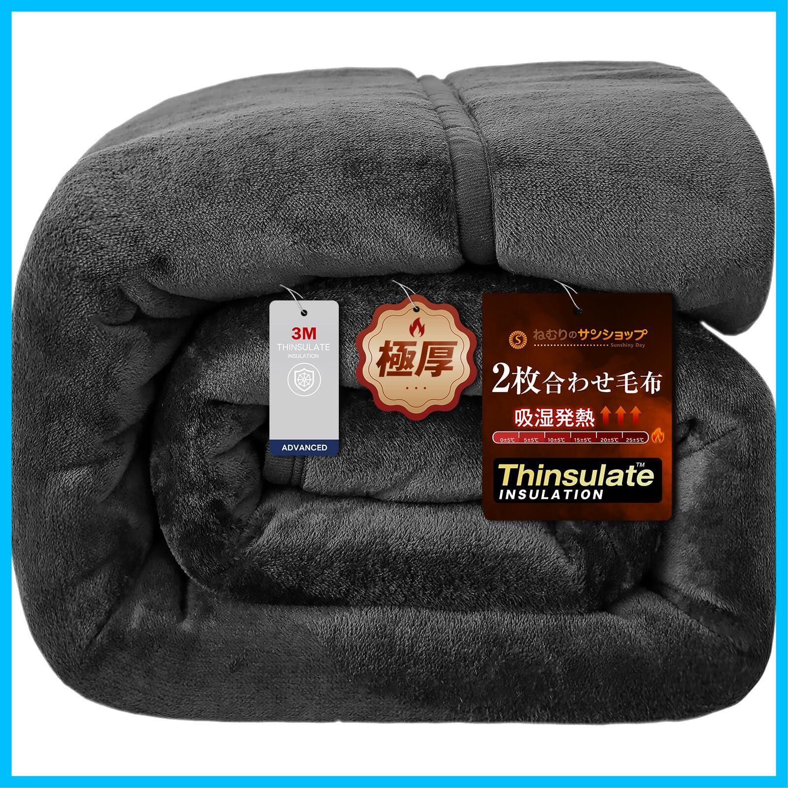 ◆◆ 毛布 シングル 冬 厚手 ブランケット 二枚合わせ 冬用 極厚 フランネル もこもこ 暖かい 四層構造 シンサレート中綿入り 極暖 蓄熱断熱素材 ふわふわ 襟付き 静電気防止 洗える ボリューム 吸湿発熱 多用途 抗菌防臭 防ダニ チャコールグレー 140×200cm ◆