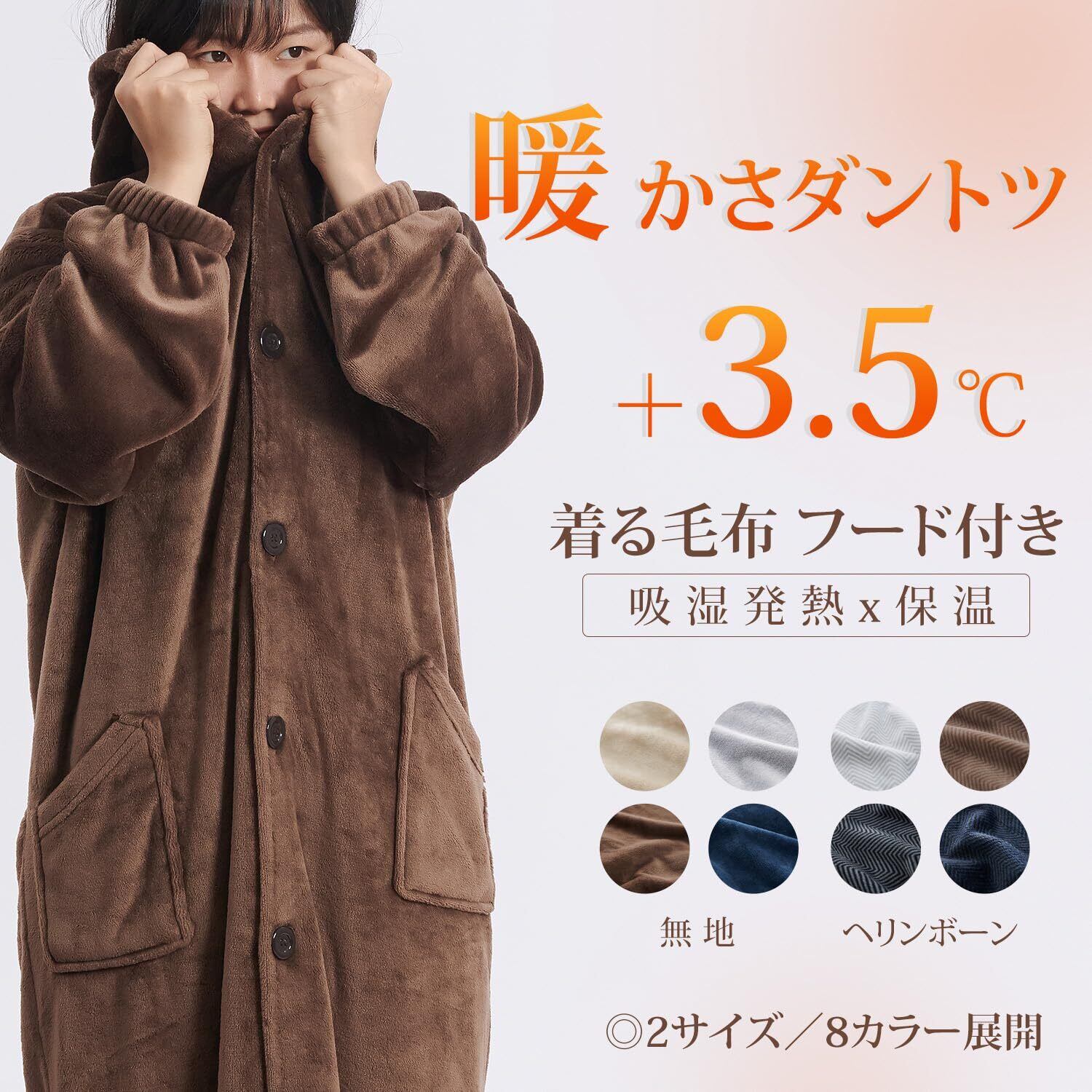 ◆◆ [クモリ(Kumori)] 冬 着る毛布 ユニセックス L-着丈130cm 暖かい 男女兼用 フランネル かい巻き ふわふわ ポケット付き ボタン付き リブ袖 フード付き 吸湿発熱 静電気防止 丸洗える ルームウェア 部屋着 あったか 春 秋 ◆